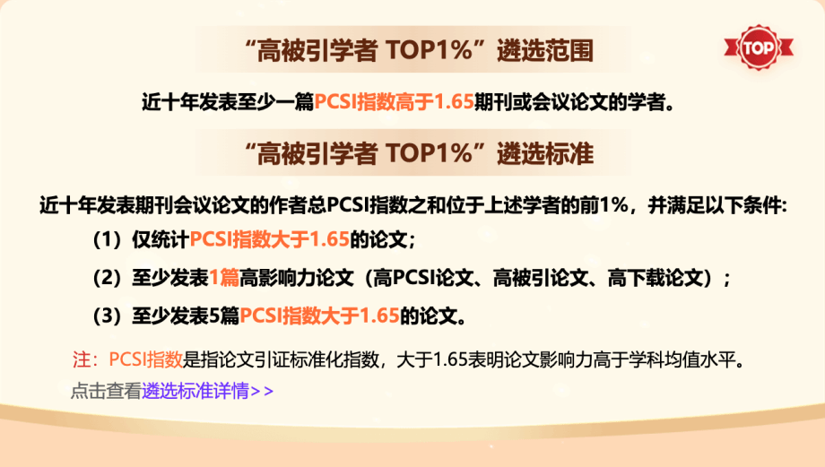 全国TOP1%高被引学者