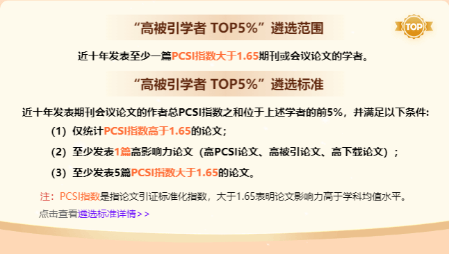 全国TOP5%高被引学者