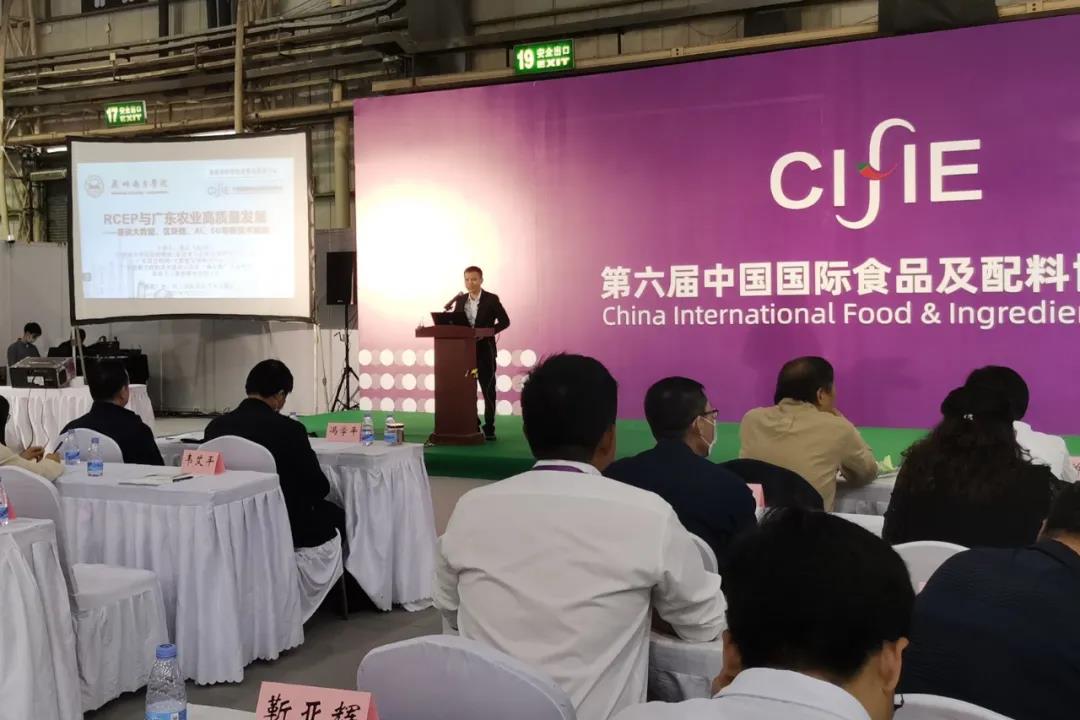 10月16-18日,第六届中国国际食品及配料博览会同期举行系列活动及论坛,邀请权威专家、企业代表等齐聚一堂,探索产业发展壮大之路,助力乡村全面振兴。“RCEP与农业贸易高质量发展”研讨会10月17日在东莞举行。会上,农业农村部农业贸易促进中心联合广东省农业农村厅进行RCEP农业贸易基地创建工作启动仪式,拟指导支持一批市(县)创建RCEP农产品国际采购交易中心、培训基地及大数据中心。伟德国际victor1946(原中山大学南方公司)特聘教授蓝云在专家研讨会上做了20分钟主题发言。