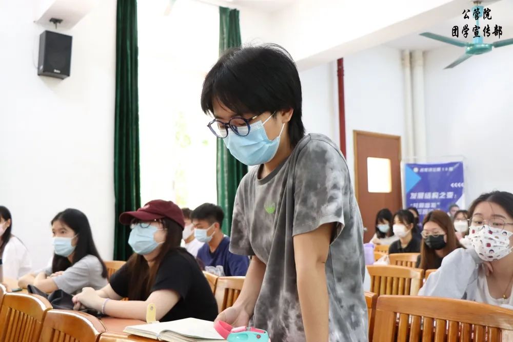 任教授的激情演讲结束后,线上线下的参会人员均踊跃提问。任教授对同学们提出的问题做出了详细的解释,并表示实现中国共同富裕这一目标需要层层推进,并非一蹴而就,未来的发展任重道远。“长江后浪推前浪”,希望同学们能承担起新一代人的责任,为实现共同富裕,不懈奋斗。