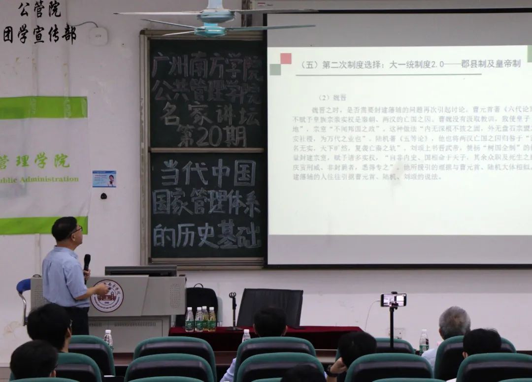 肖滨教授开场就提出P-S理论,P代表中国共产党,S代表的是国家,阐述我国目前党政一体的治理体系是符合历史潮流和社会发展的。同时从以下四点介绍当代中国国家治理体系的历史基点:第一,论述中国古代实现“大一统”的必要性和重要性,点明“大一统”也是当代中国国家治理体系选择的历史基点与出发点。第二,阐述了古代中国追求“大一统”的两个逻辑支配点:一为外部逻辑(安全逻辑),华夏群体为了生存安全,需以聚集变得更强大;二为内部逻辑(统合逻辑),以“大一统”实现的聚集,追求大共同体,但其中也面临整合的问题。第三,分析了郡县制中地方与中央的关系,强调党政一体必须要坚持党的领导,处理好中央与地方的关系。第四,总结古代中国以“亲亲”为原则的封建制有利于横向整合,而以“贤贤”为原则的郡县制有利于纵向管控,以此提出当今的中国需要处理好横纵问题,更完善地处理党和国家(P-S)的关系,推进现代国家治理体系建设。