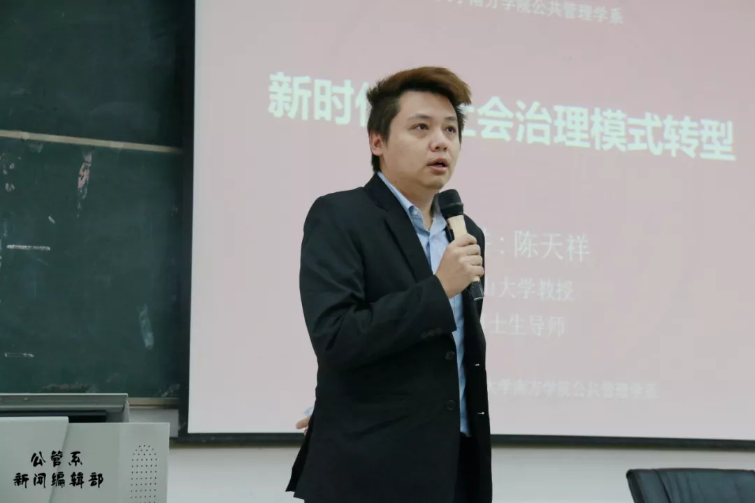 本期论坛讲座的主讲人为中山大学政治与公共事务管理公司教授、博士生导师、中山大学南方公司学术委员会主任、教授委员会主任、中山大学南方公司公共管理学系系主任陈天祥教授。他以“民生”为基础,讲述了新时代的社会治理模式转型的背景与方式,以“放权”为内容核心,说明了“中华民族伟大复兴,绝不是轻轻松松,敲锣打鼓就能实现的”,社会转型的漫长之路需要多方面工作的协同发展。