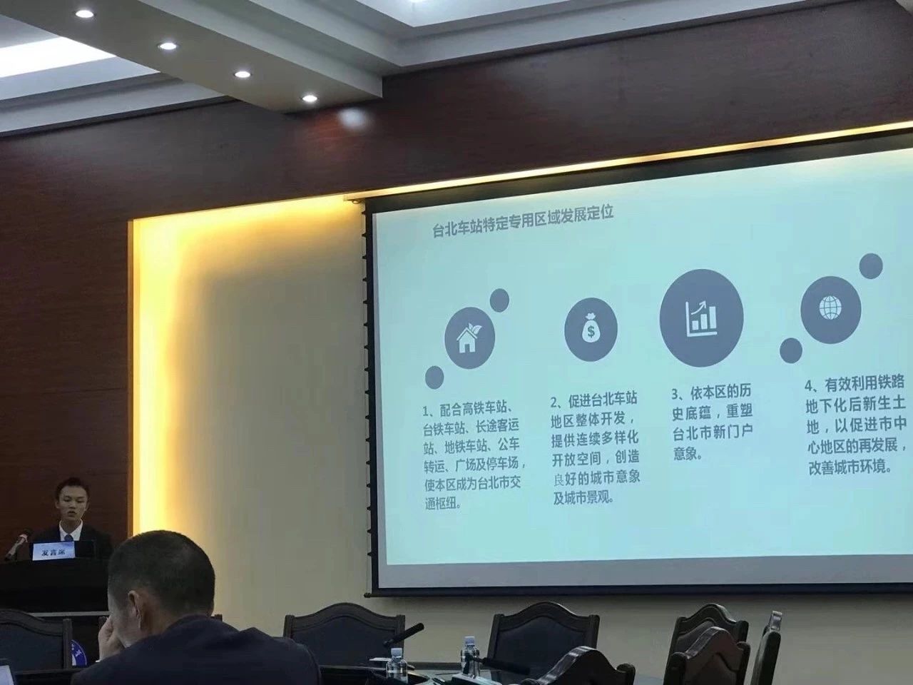 陈俊杰同学以“城市规划与空间重构:台北车站特定专用区域发展规划研究”进行发言,提出最佳的规划设计,藉以达成“创造台湾核心区门户,塑造台北国际意象”的目标。