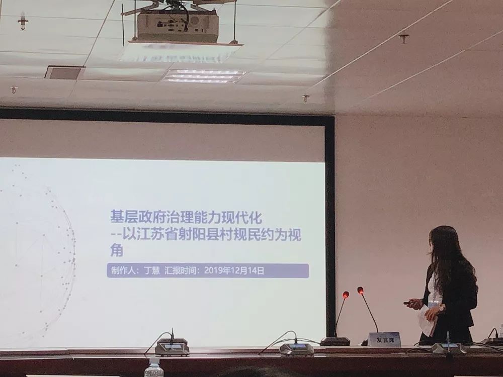 丁慧同学以“基层治理能力现代化下江苏射阳县村规民约问题研究”进行展示,通过研究新时期农村村民自治中有关现代村规民约的制定与规范问题,提出我国基层民主发展是我国式民主政治的重要体现。