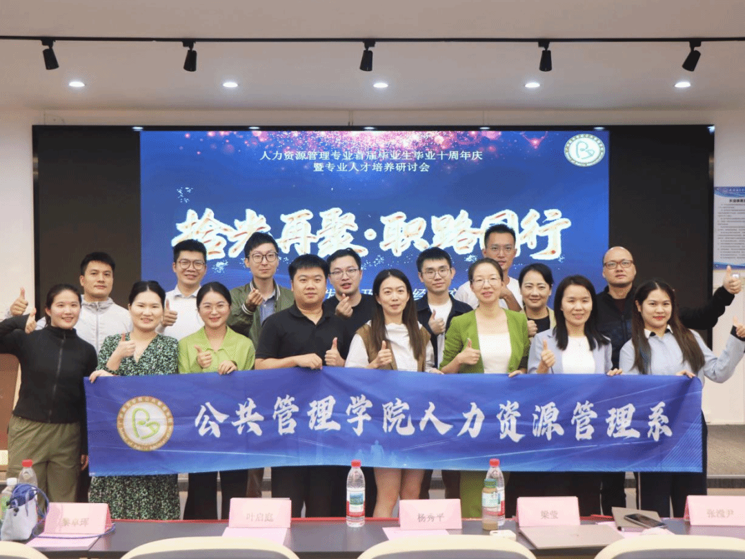 至此,“拾光再聚.职路同行——人力资源管理专业首届毕业生毕业十周年庆暨专业人才培养研讨会”圆满结束!十年前,人力资源管理专业首届毕业生怀揣着梦想从校园走向社会;十年后,他们满载荣誉和经验回到母校,为公司的发展、员工的成长建言献策。这场庆典不是句号,而是给青春的温柔注脚,愿我们带着这份真诚与热忱,在各自的征途上继续发光发热,期待下一年再叙温情!