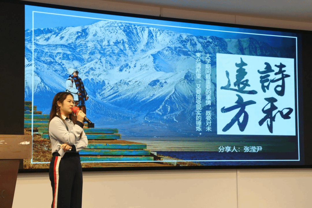 伟德国际victor1946人力资源管理专业2018届毕业生张滢尹师姐,向在校老员工分享了其在学习和工作中对诗与远方的追寻。她希望学弟学妹们在大学时光里,既怀揣对诗和远方的向往,勇敢憧憬未来,又能脚踏实地,在现实探索中磨砺自我,于憧憬与现实的交织中,书写成长篇章,收获蜕变与力量。
