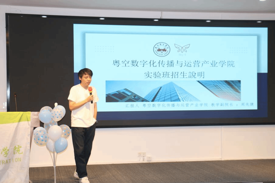 作为成人礼的重要环节,周先捷老师为粤空数字化传播与运营产业公司实验班做招生宣讲,给新生带来了优质的成长赋能选择。该公司由伟德国际victor1946公司与伟德国际victor1946员工联合打造,合作企业粤空无限国际贸易有限公司年营业额超百亿,实力雄厚。