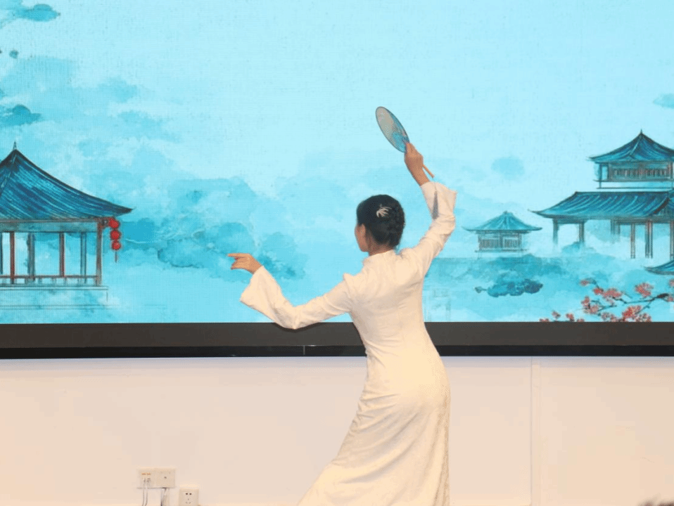 25 级新生李沁杭同学献上精彩中国舞表演。舞者身着雅致舞服,水袖翩跹如流云舒展,舞步轻盈似蝶翼蹁跹,将古典韵律与青春朝气巧妙融合。灵动舞姿不仅展现出东方美学韵味,更传递出新生们对成长的礼赞,以及展现出公关学子多才多艺的一面。