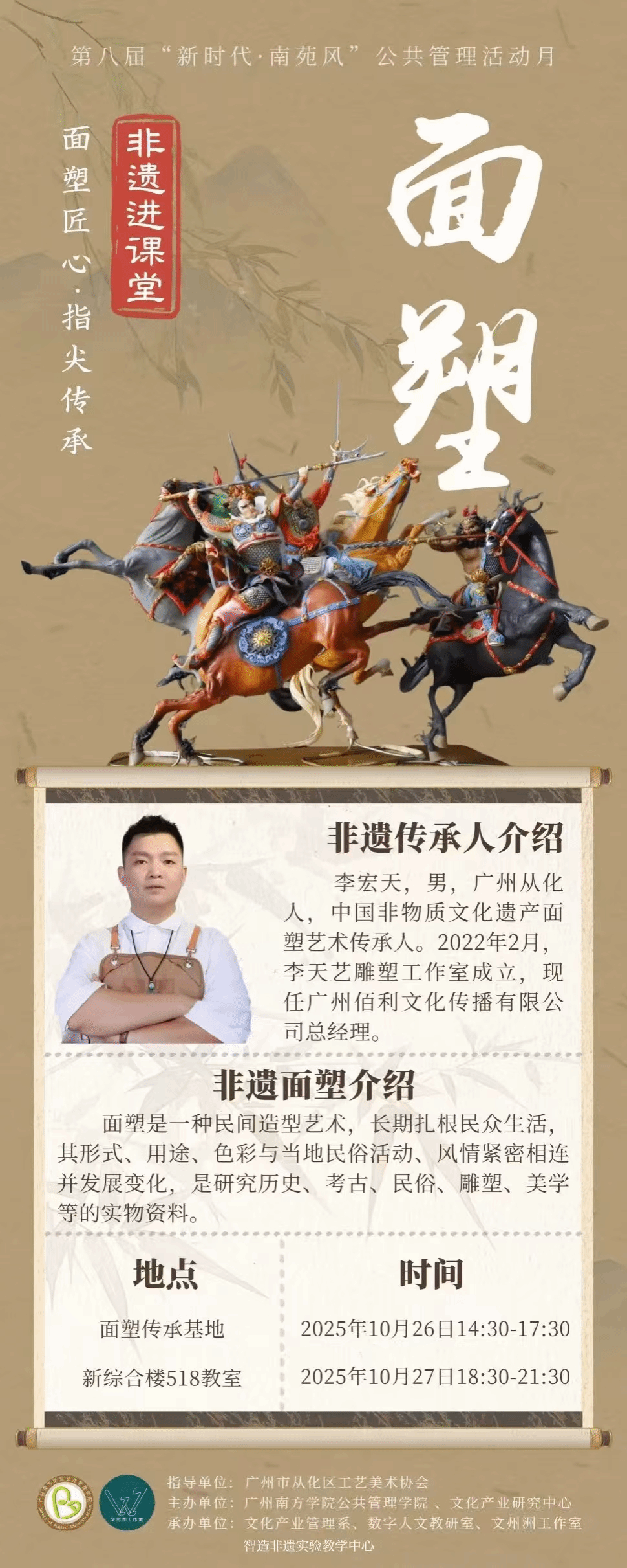 两场非遗面塑活动,不仅让同学们零距离感受了民间工艺的魅力,掌握了面塑技艺,更实现了传统与现代的碰撞、传承与创新的交融。此次活动是高校非遗教育的一次成功实践,让非遗真正走进校园、走进课堂、走进心灵。未来,文化产业管理专业将继续探索“非遗+课程”的可持续合作模式,让更多非遗项目走进校园,让传统非遗技艺在青年一代手中薪火相传,焕发出新的时代光彩!