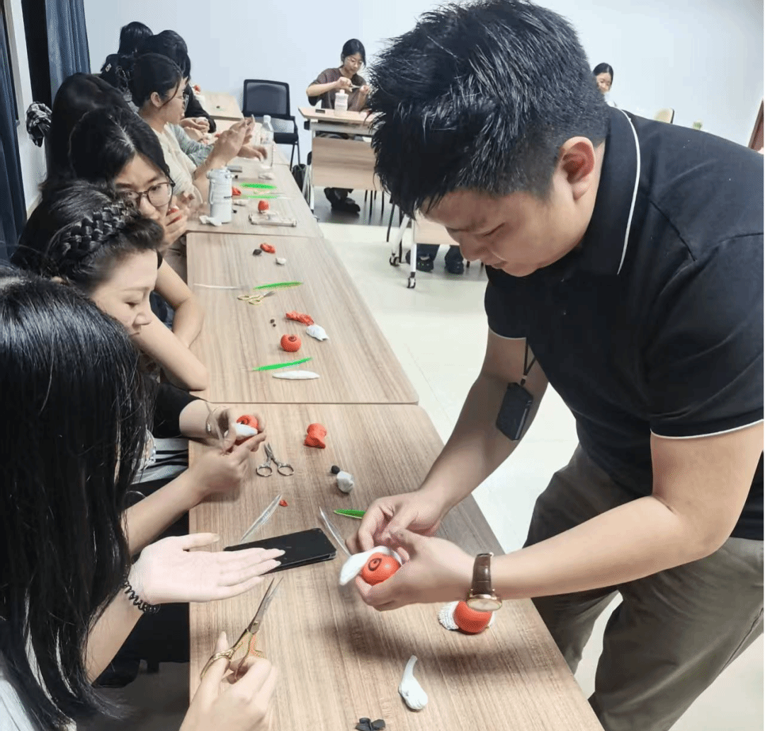 课堂上,同学们以捏制憨态可掬的醒狮为起点,踏上面塑艺术的奇妙之旅。起初略显笨拙的双手,在反复练习中逐渐变得灵活,面团仿佛被注入了生命,在指缝间流转、塑形,焕发新生。每当遇到困惑,李宏天老师总会耐心指导,鼓励大家大胆尝试,勇敢创造。在热烈的氛围中,知识与欢乐交织,创意与传统共舞,同学们不仅掌握了面塑基础技法,更深入了解了非遗背后的文化底蕴。