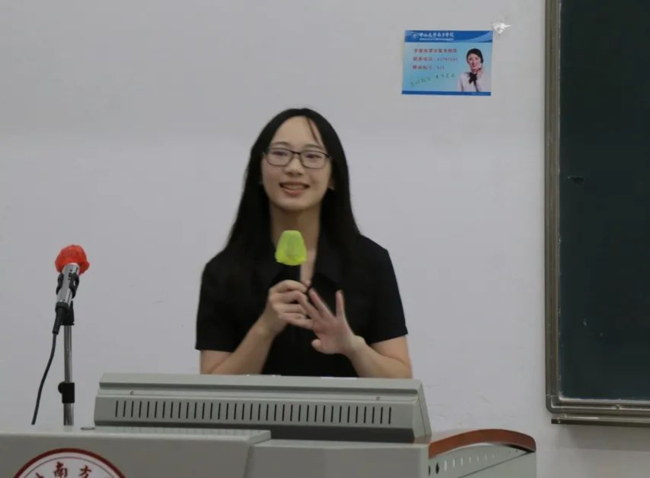 晓蝶老师用幽默的脑筋急转弯开始了她的自我介绍,又以“庄生晓梦迷蝴蝶”这一句诗开始介绍自己的名字。晓蝶老师本硕均毕业于华南师范大学,承担大一新生中国文化史这门课程。同时作为剧好玩•剧本研究院社团的指导老师,欢迎对剧本杀感兴趣的同学与老师进行交流。
