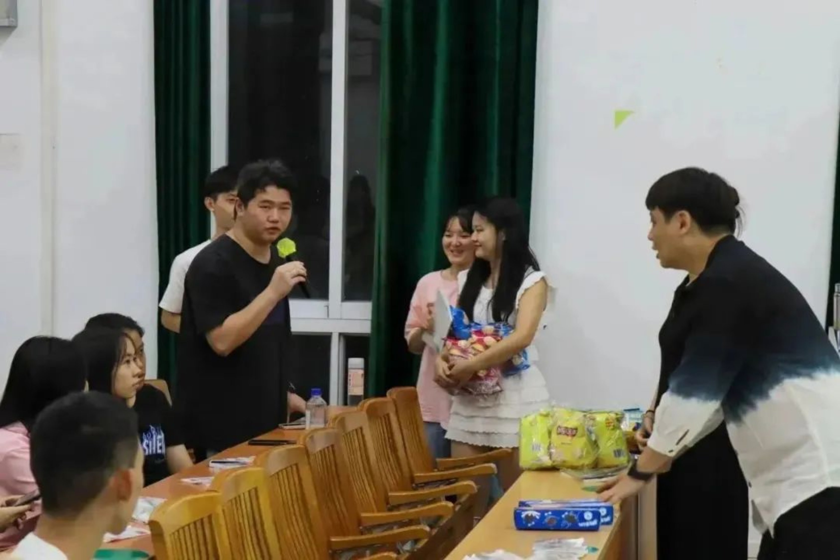 大周现场即兴提出了几个关于此次见面会的问题,同学们都积极踊跃地举手参加到我们的问答游戏里,现场的气氛越来越活跃,同学们还拿到了学长学姐们准备好的小零食。新生见面会在热闹的气氛中落下了帷幕。