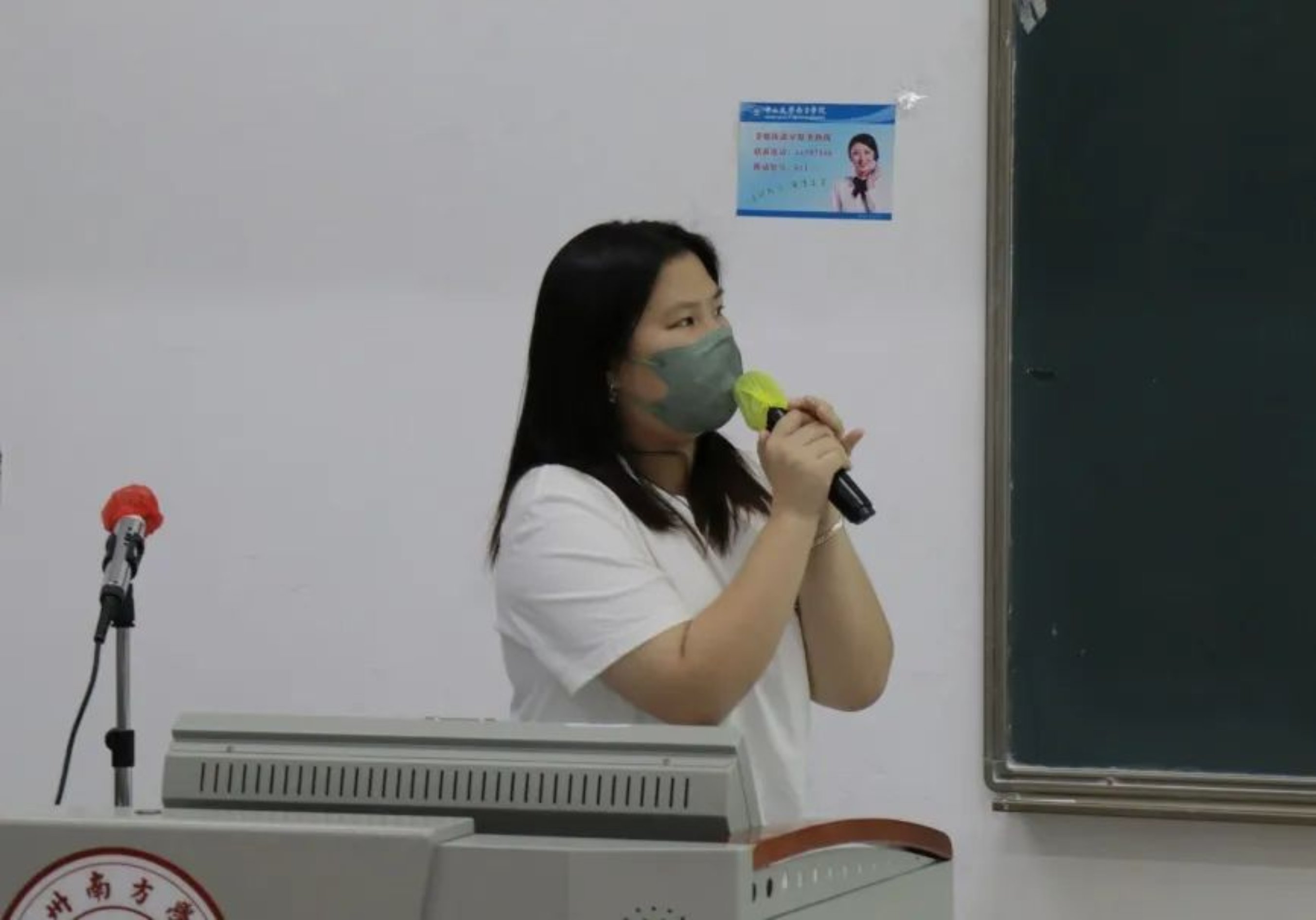 因为刘佳老师紧张的工作行程无法出席这次的见面会,所以老师的介绍交由22级的刘鹏媛学姐代替完成。老师希望同学们在文化产业管理的学习途中,多一点参加比赛,让学习的经验更加丰富。并且鼓励各位新生务必坚持文管这一专业以及热爱文管。我们的许多学长学姐也是十分的优秀。