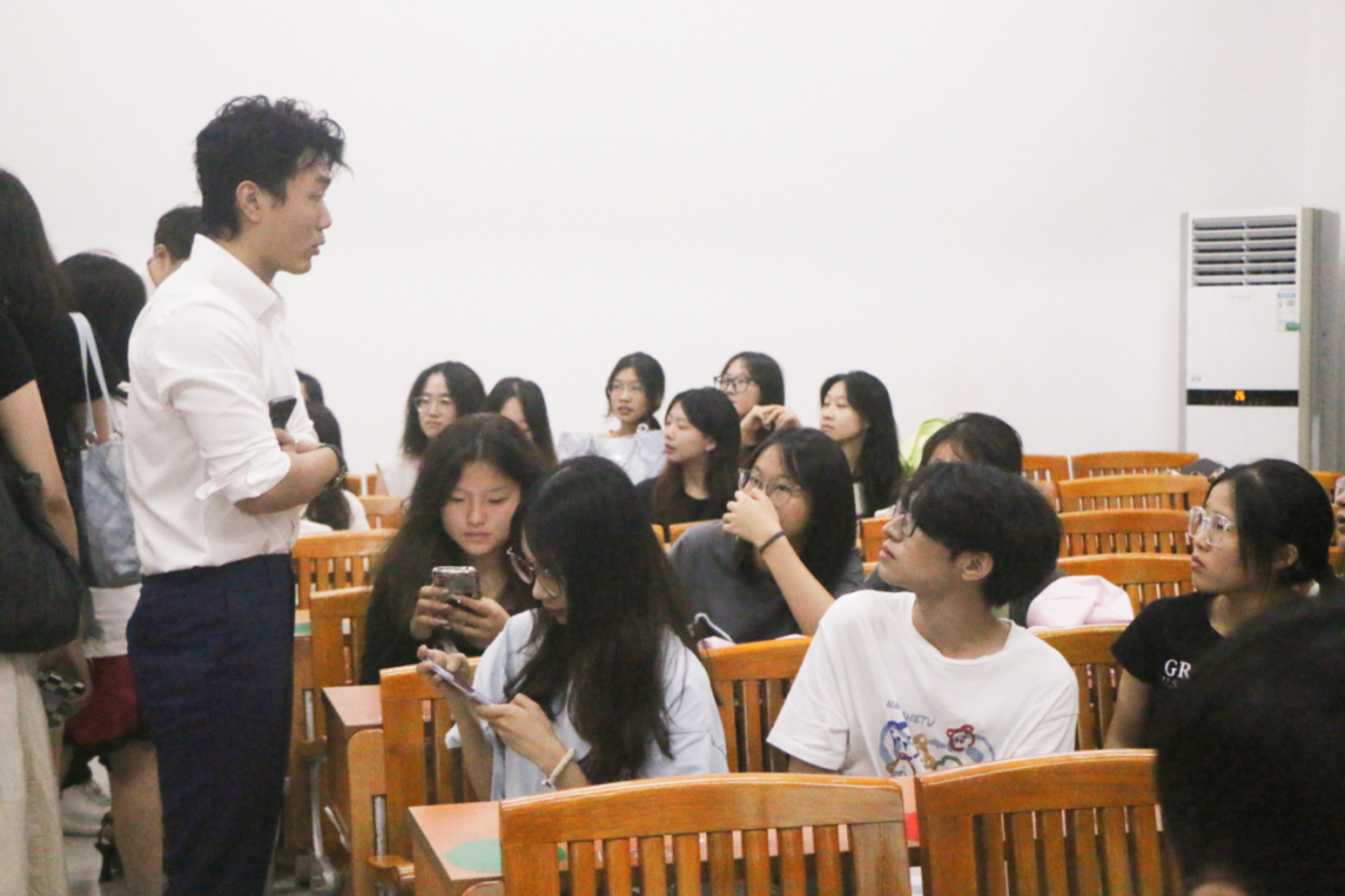 蔡宝婧主任向新生介绍到:“公共关系学是一个强调综合能力运用的专业,需要同学们在大学四年里提升自己的实践能力,包括策划沟通能力、协调组织能力,创新创造能力等,激发对成长路上未知的事物的兴趣,全方位提升自己,才能追得上社会的快速发展。”她还强调了科技进步对于知识获取的重要性,并鼓励新生们在大学期间全面发展,将课堂知识与科技工具相结合。