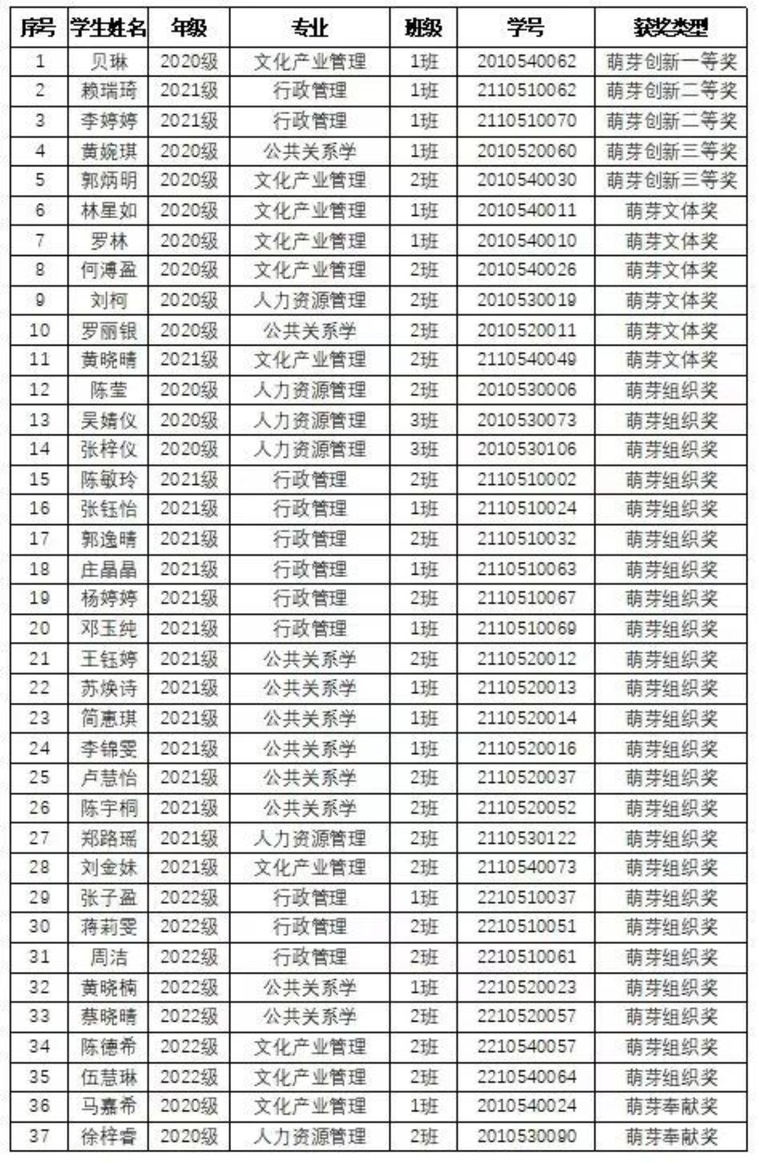 第二届萌芽获奖名单