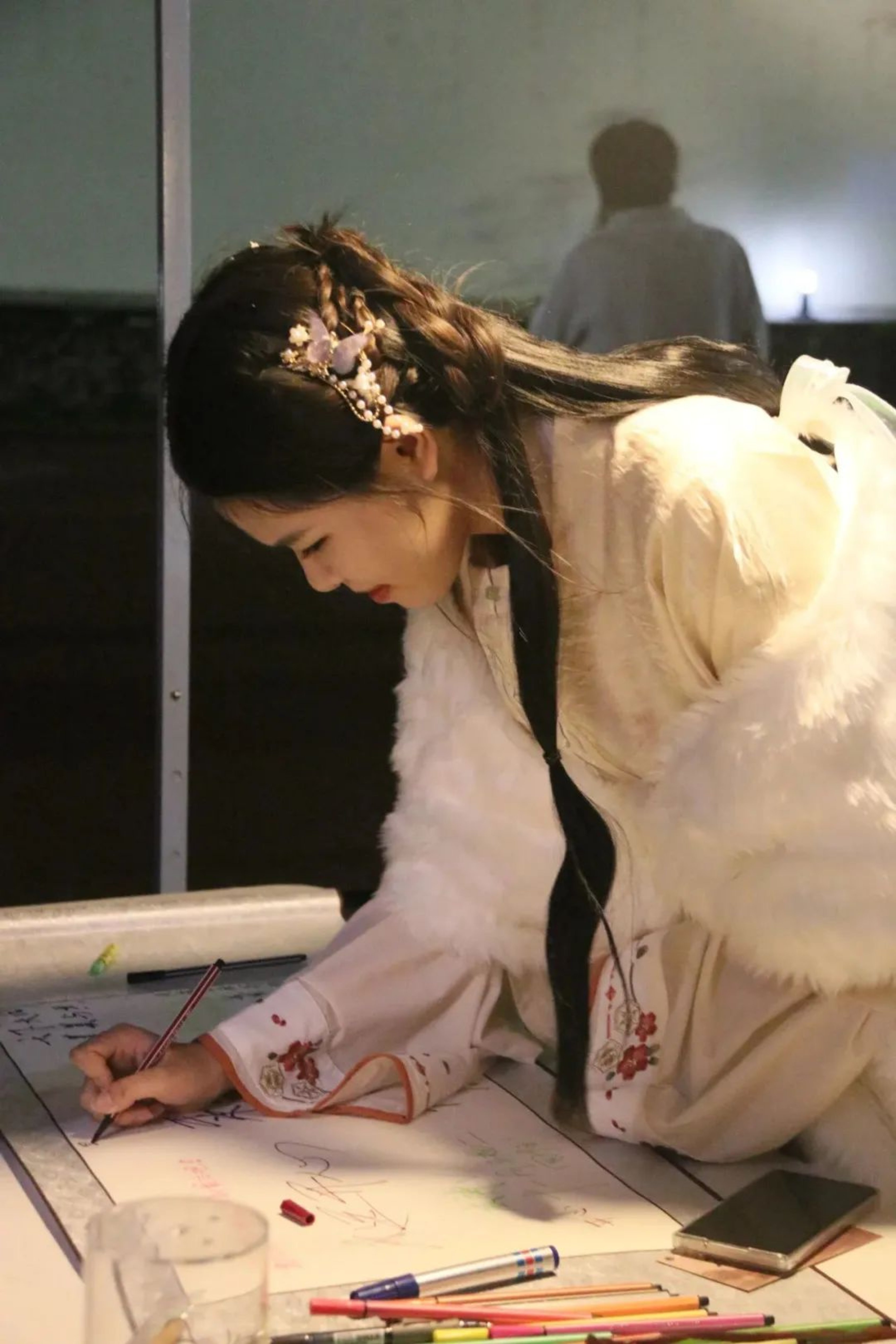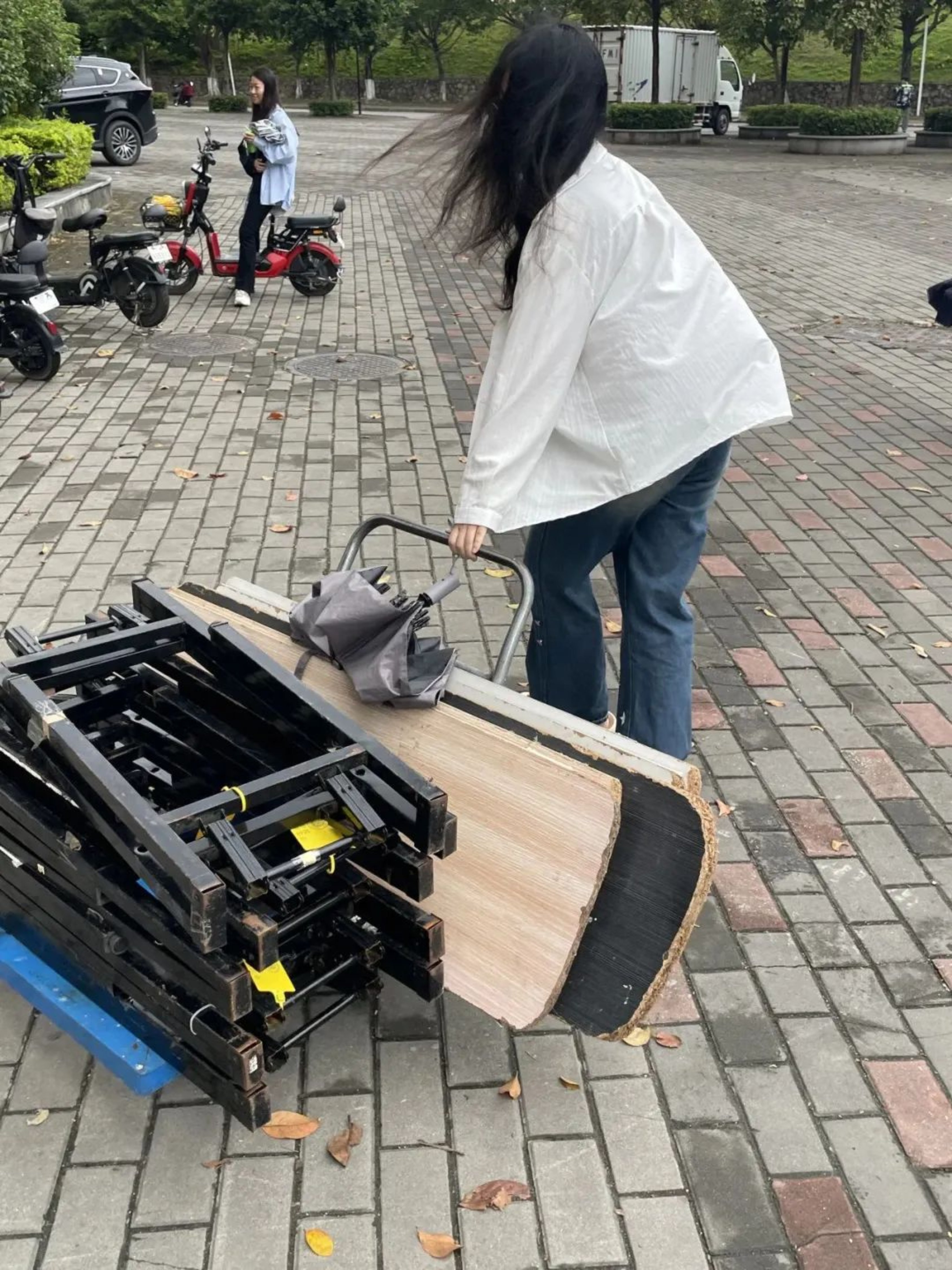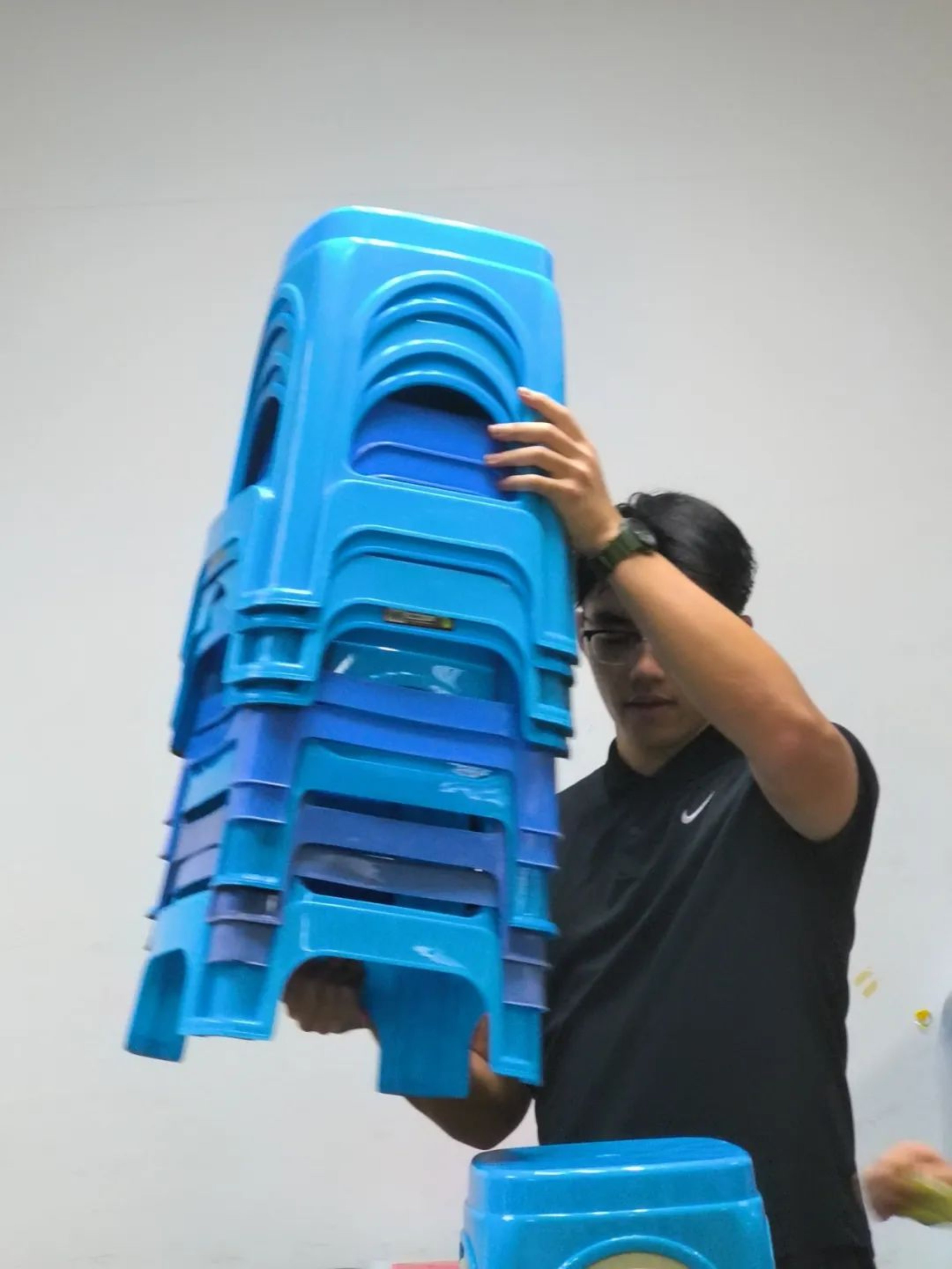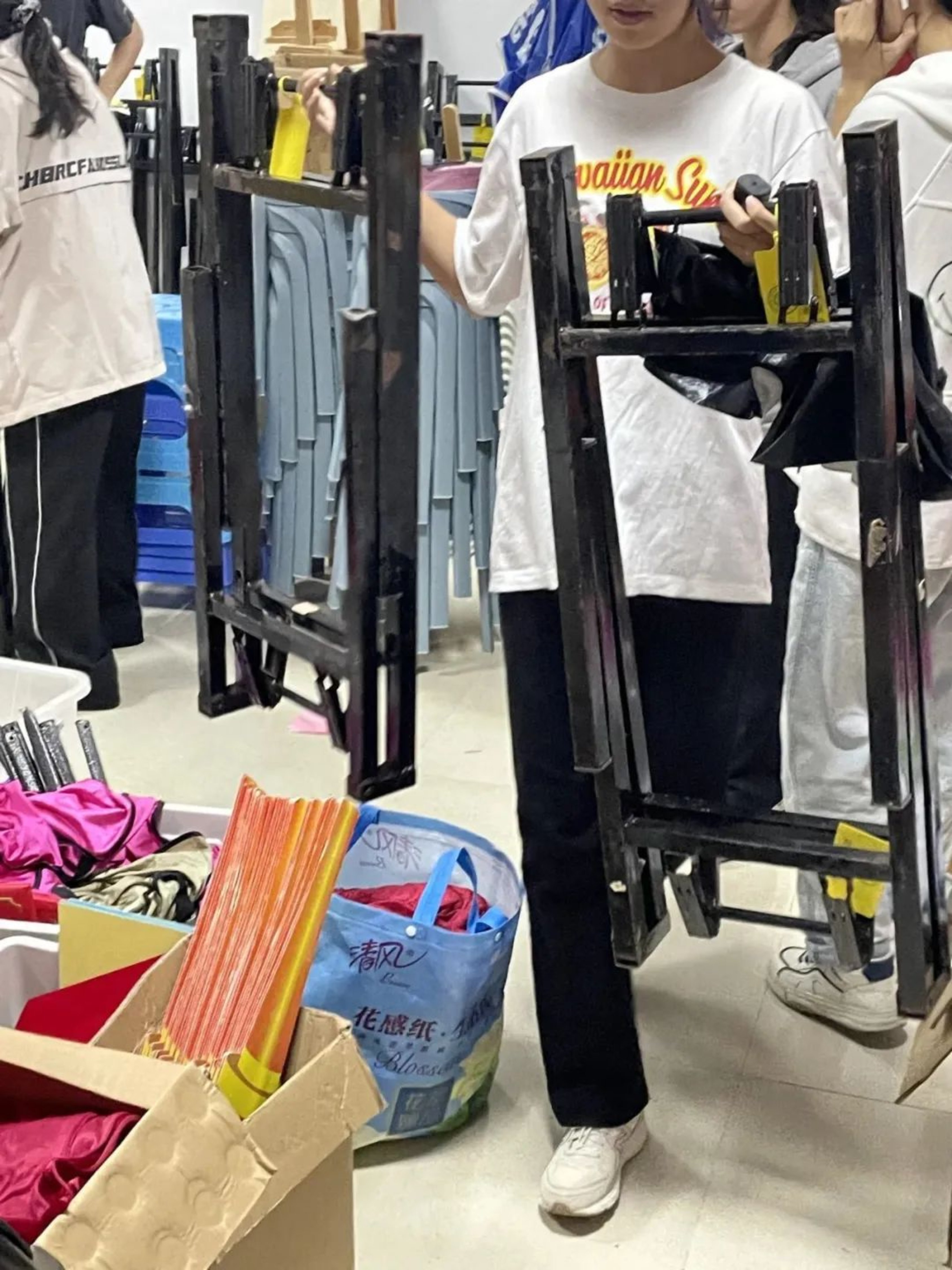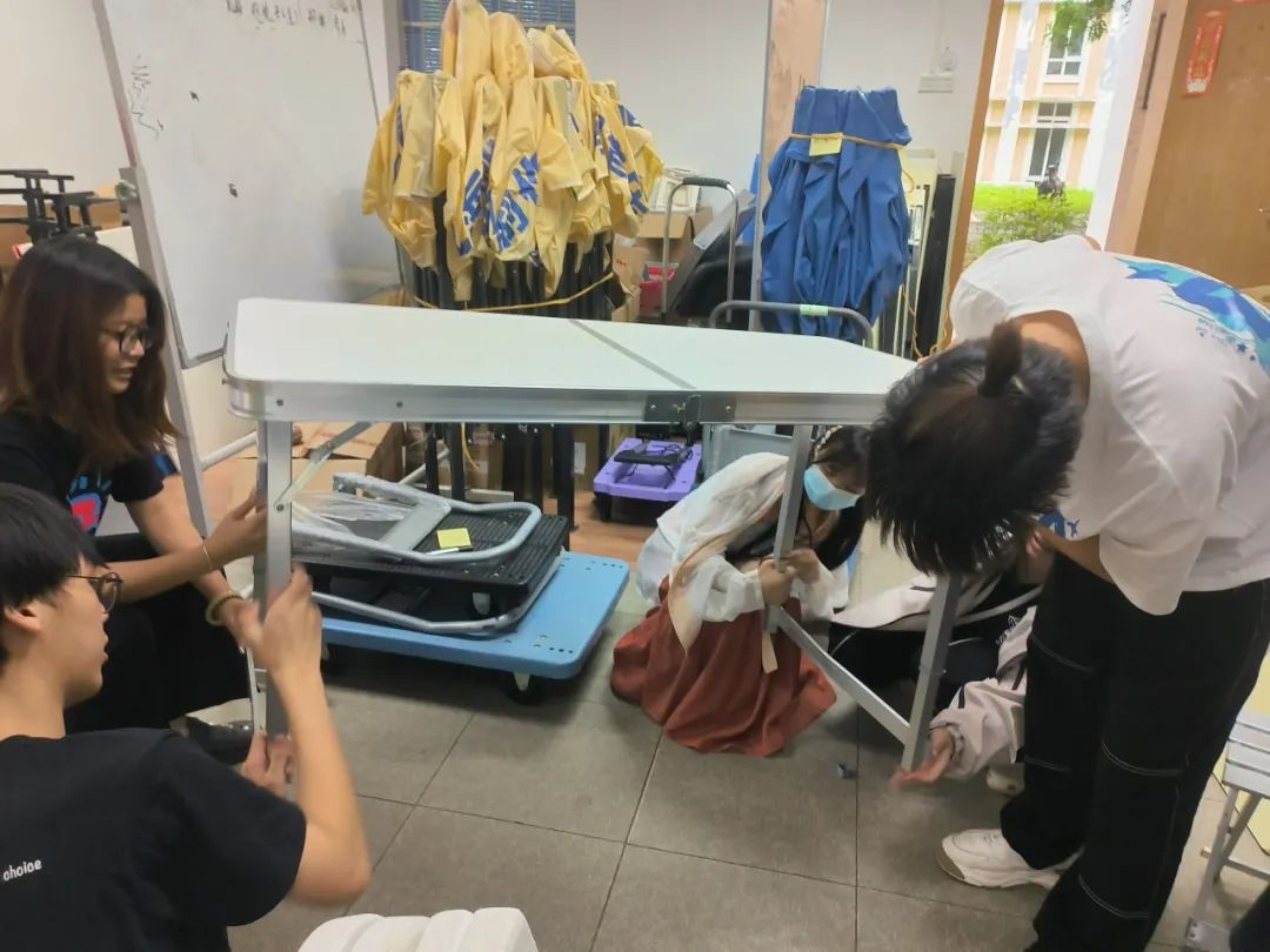 “天青色等烟雨,而我在等你。”晚上六点,工作人员在东区田径场摆放物资、搭建伞棚,天上飘落着丝丝细雨,为这场跨越千年时空的相遇添上一笔诗情画意,混着雨水的微风和我们一起等待同学们的到来。
