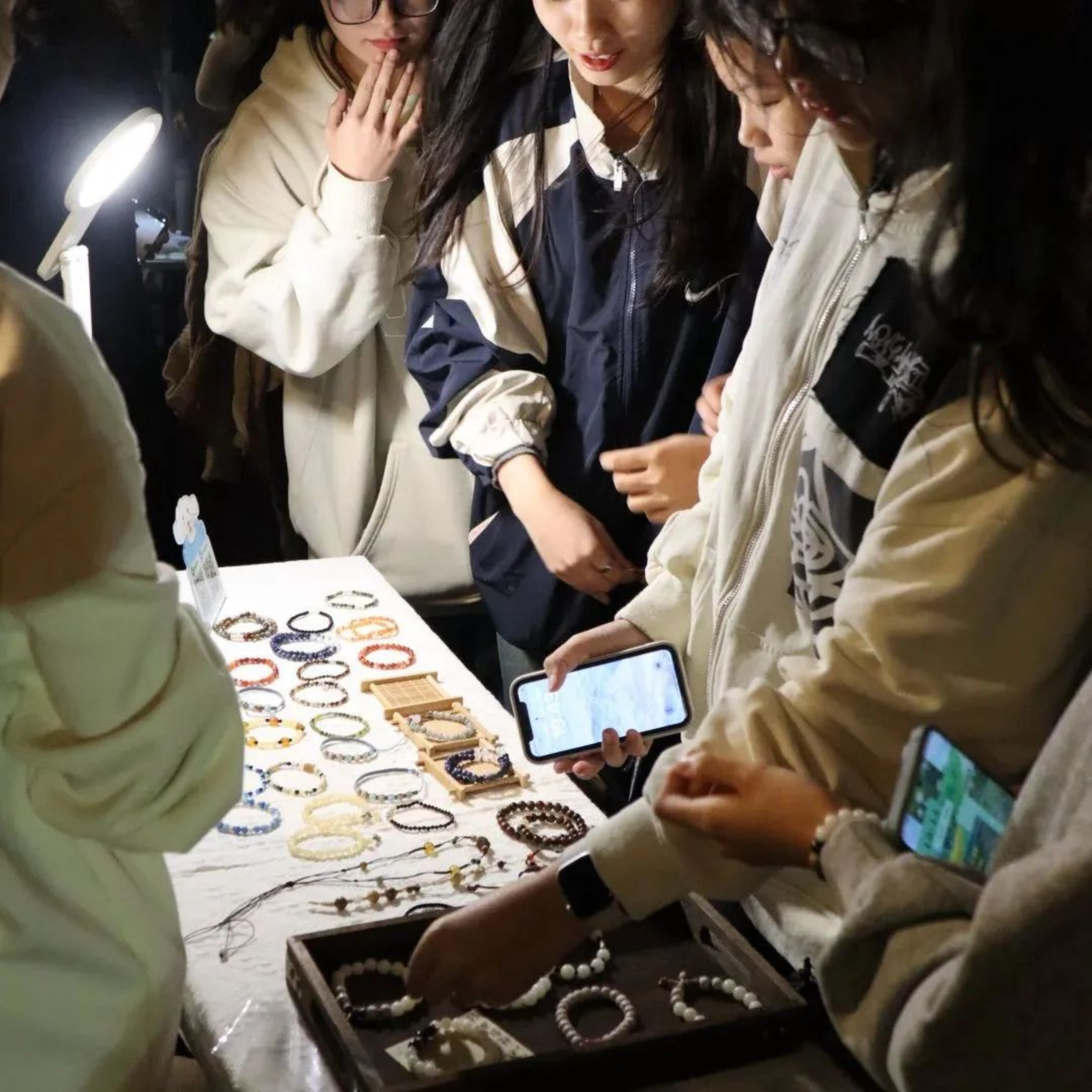 摊位【肆】——糕糕珠:玉石成串,美梦成真。糕糕珠摊位上一圈圈玉石,都被赋予了美好的愿望与思念。将自己的心愿寄情于玉石,期待着美梦的降临。