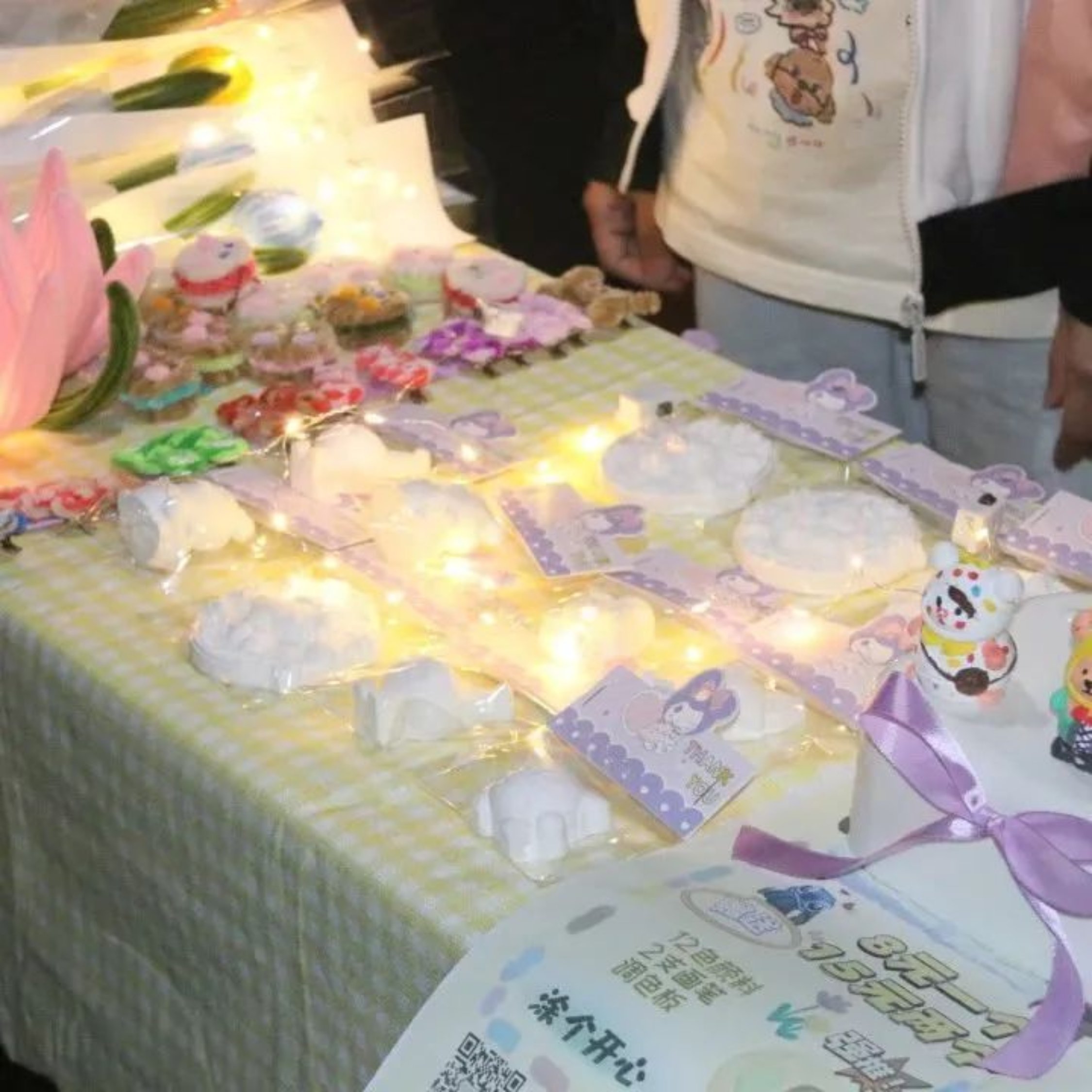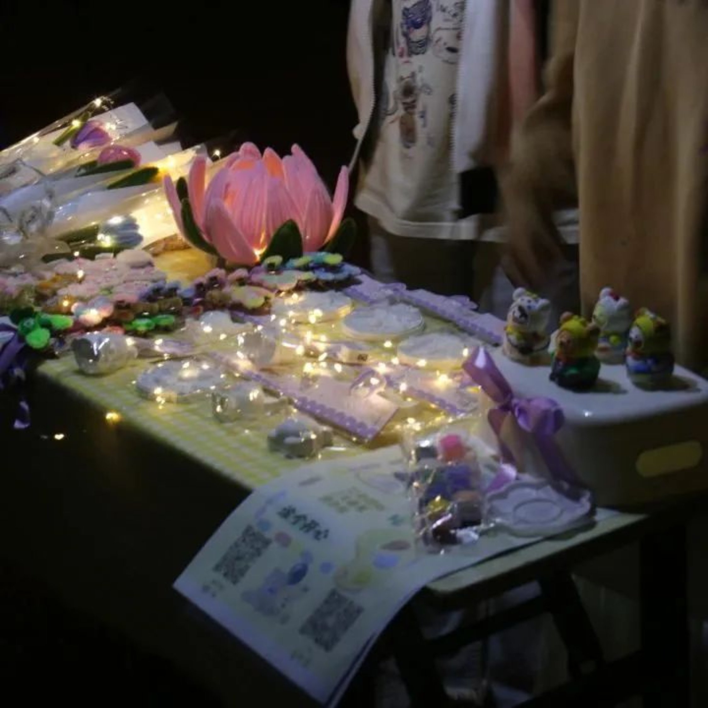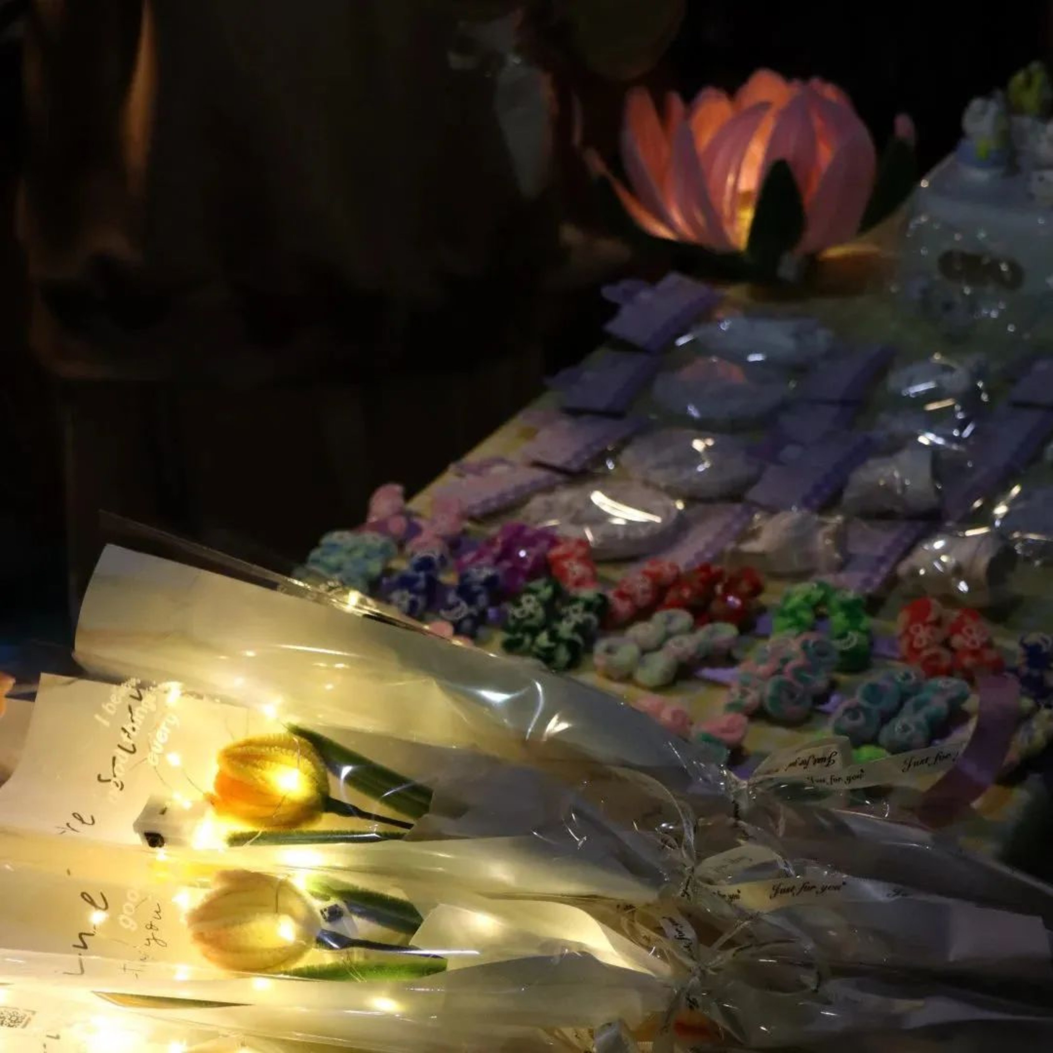 摊位【伍】——秋桂造物坊:秋桂造物坊将温馨定格,变为永恒。摊位上的手工制品小巧又精致,星星点点的灯光仿佛繁星洒落,带着温馨走在夜市之中,留下属于我们的美好回忆。