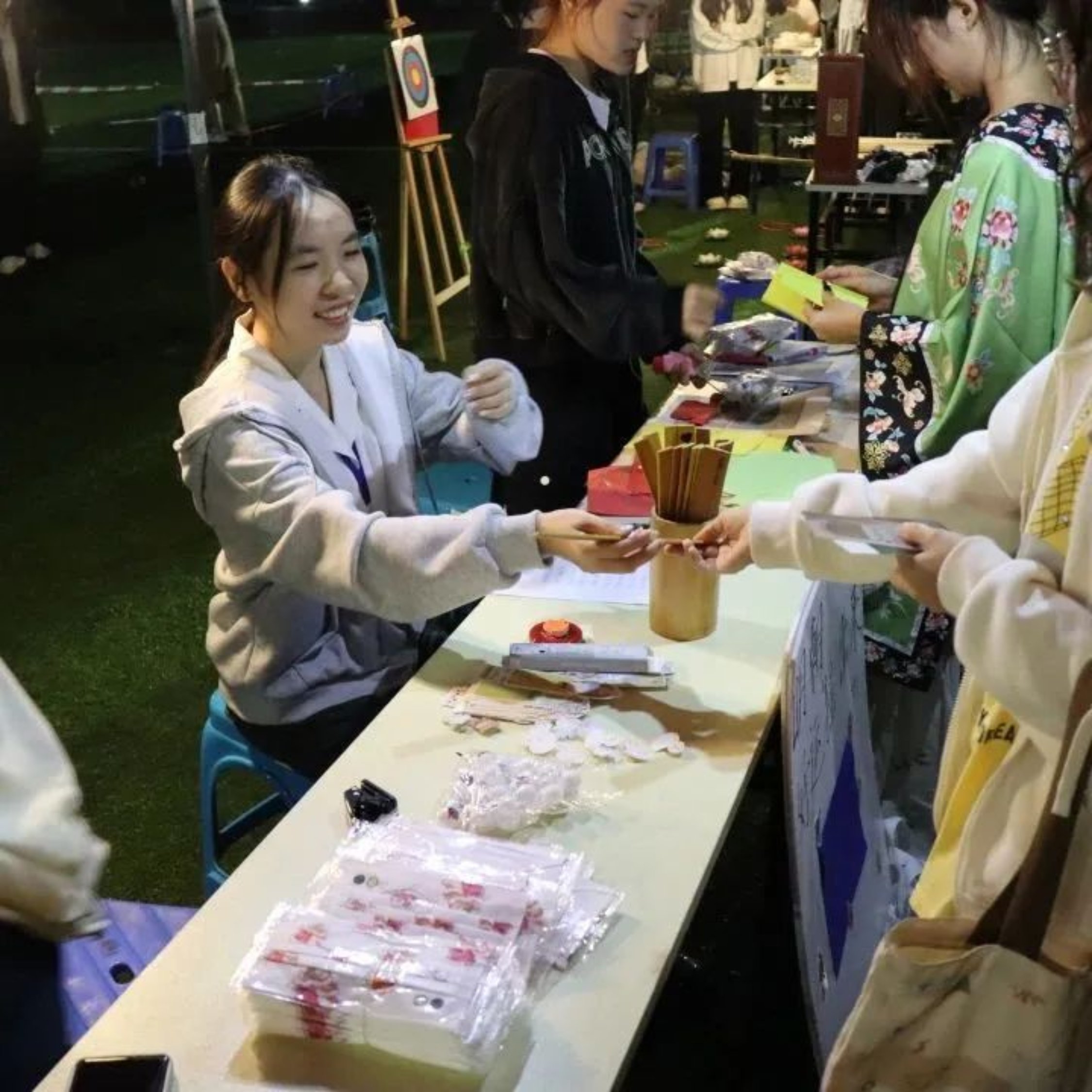 好运要靠摇出来,明朝的摊位上有趣的掷签玩法,学子们体验到了明朝的礼仪文化、历史风情。