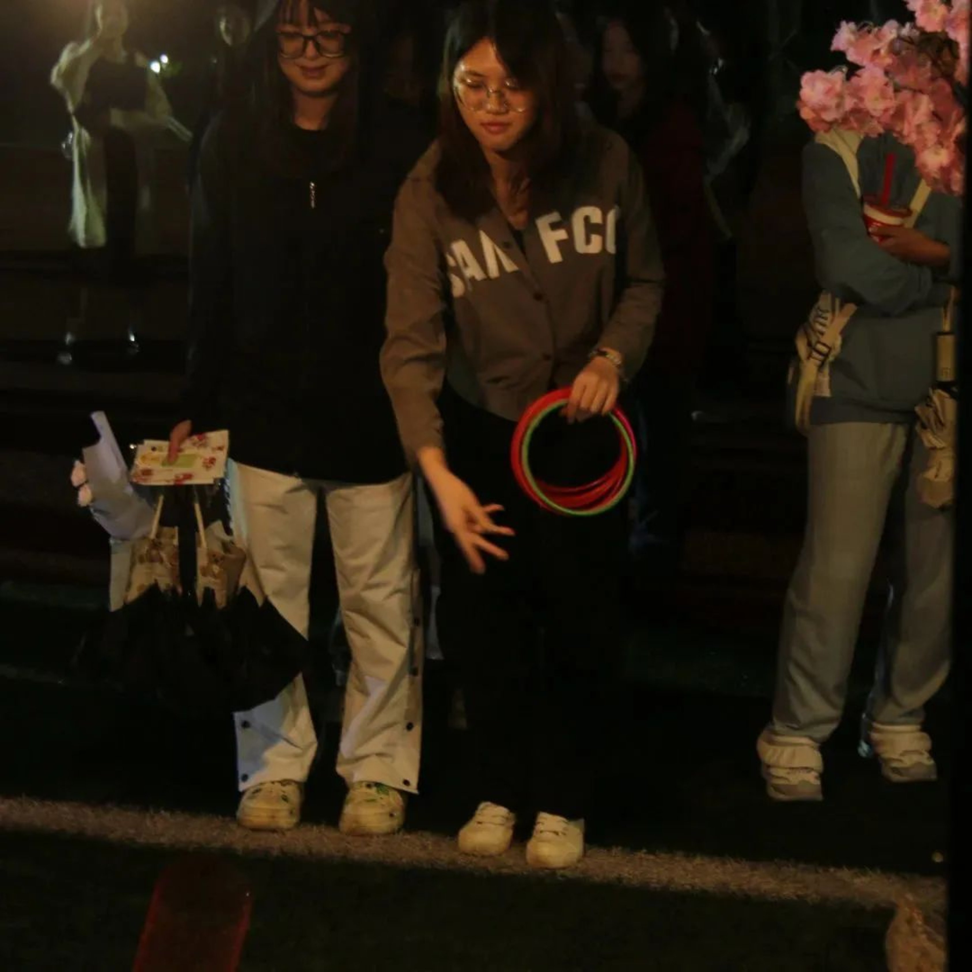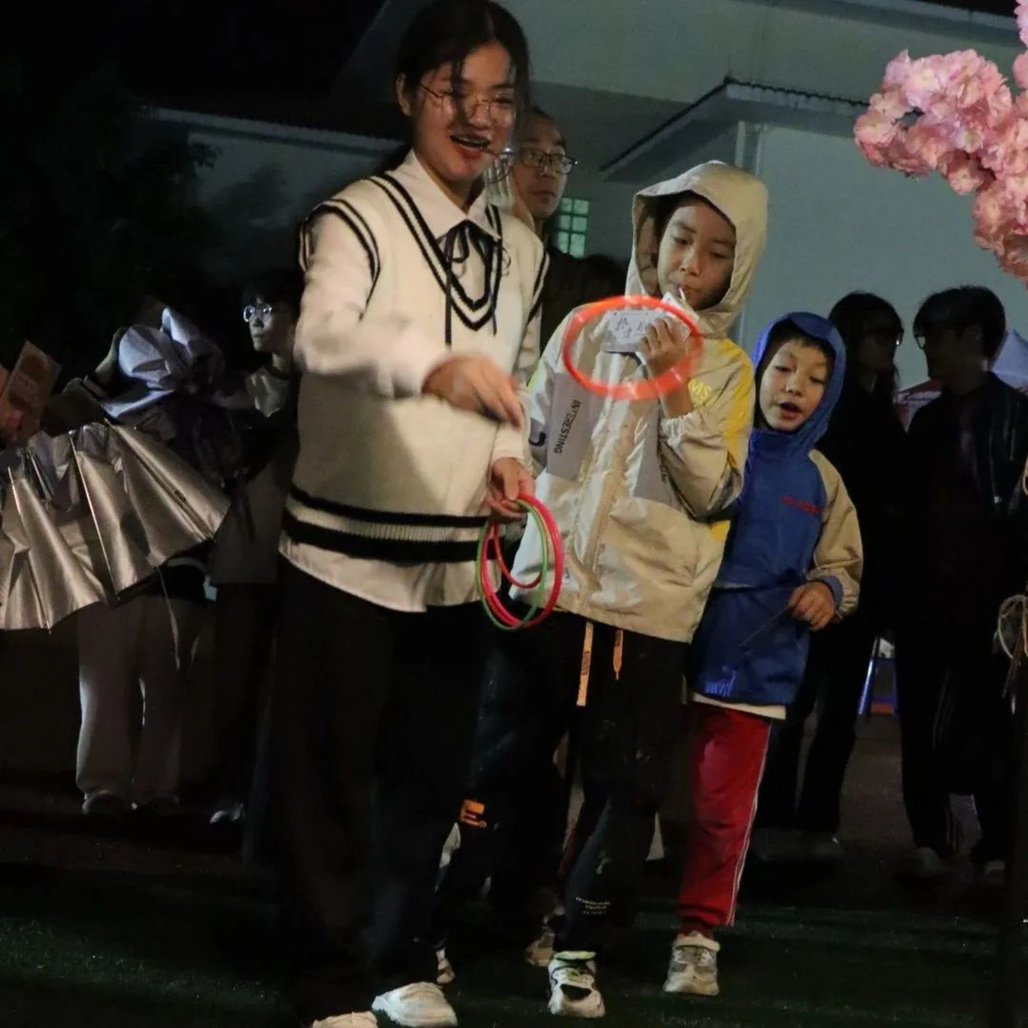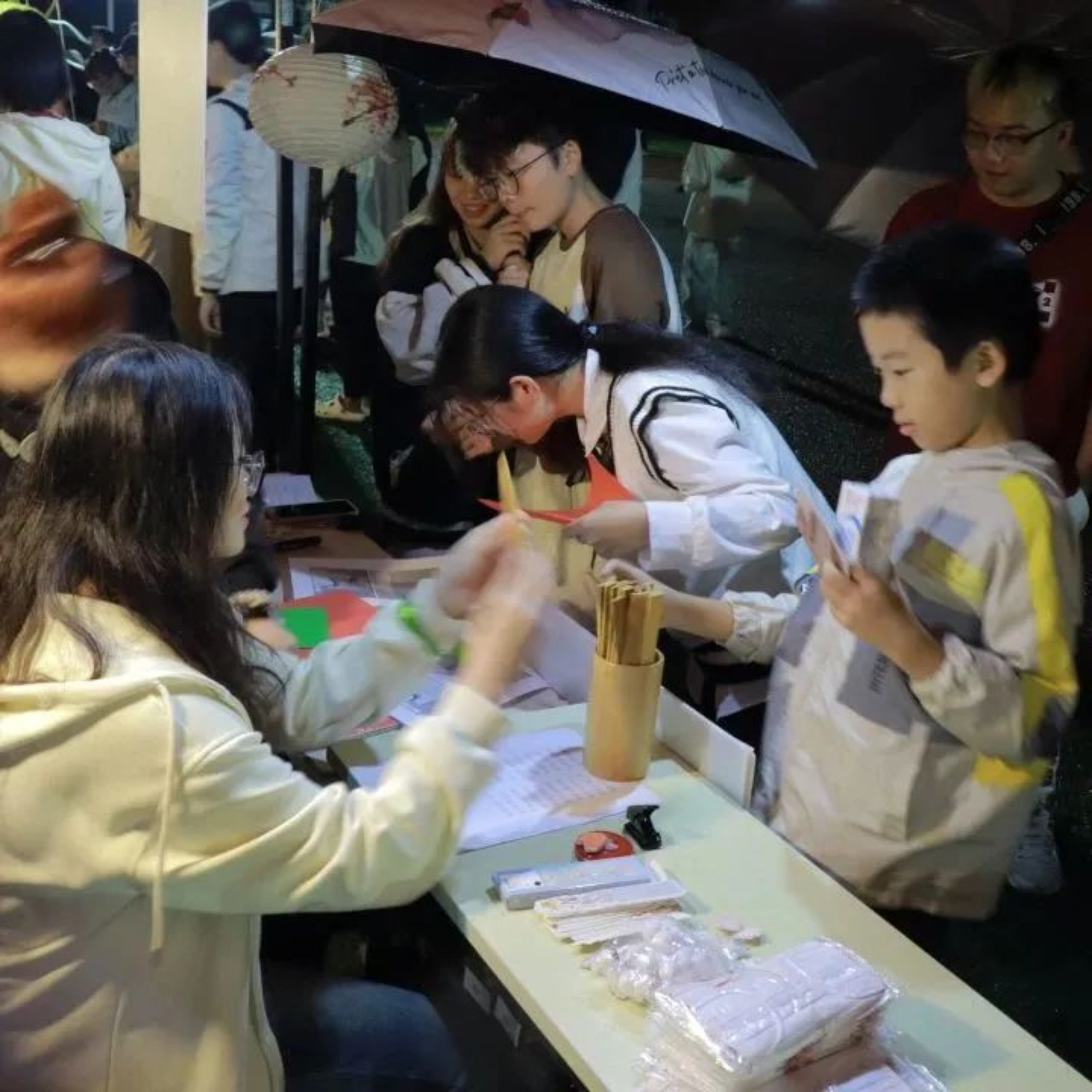 夜市开始,雨点也停止抚摸地上人们的脸庞,南苑学子怀揣着期待的心赶来,东区操场眨眼间变得热闹非凡。还有各院系的老师莅临活动现场,和同学们一起探索夜市的乐趣。