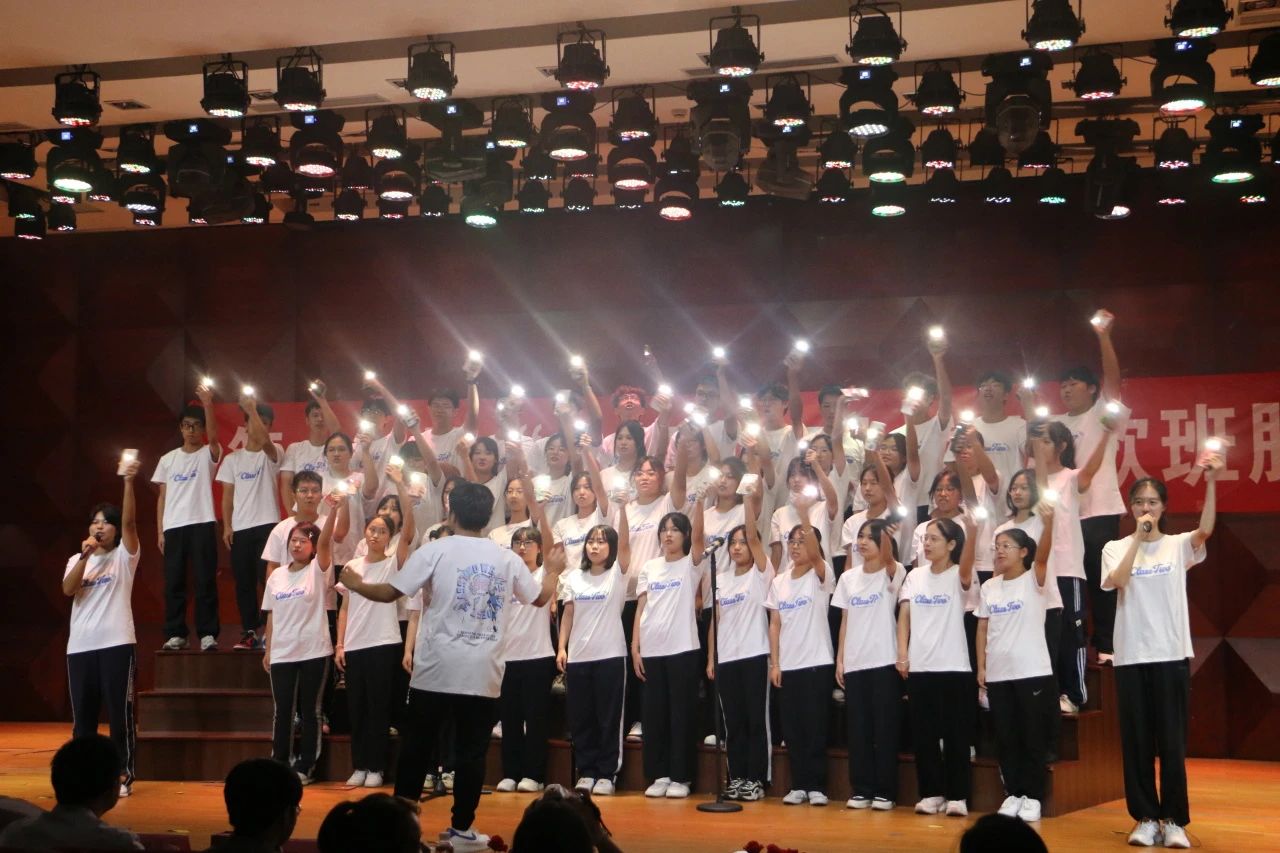 第五个演唱曲目《逆光》是由公共关系学1班和2班共同演唱的,两个班的合作演唱展示了他们非凡的凝聚力。一个个泛着光的星星灯在黑暗中被举起,一颗星星的光芒是微弱的,无数颗星星却可以照亮黑暗,星星虽小却璀璨了整个天空。