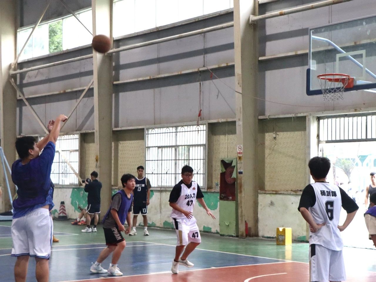 伴随着裁判一声哨响,比赛正式开始!20插本队的10号梁铭晖同学拿下了本场比赛的第一个2分!20插本队的77号王浩威同学、13号黄栋豪同学紧随其后,各拿下2分。行管队5号陈凯涛同学投入一个罚球,随后行管队15号廖建鑫同学投入一颗2分球继续将比分差距拉回。20插本队的13号黄栋豪、77号王浩威又接连投入4个2分球,将比分拉开。第一回合结束,行管队与20插本队的比分为3:17。