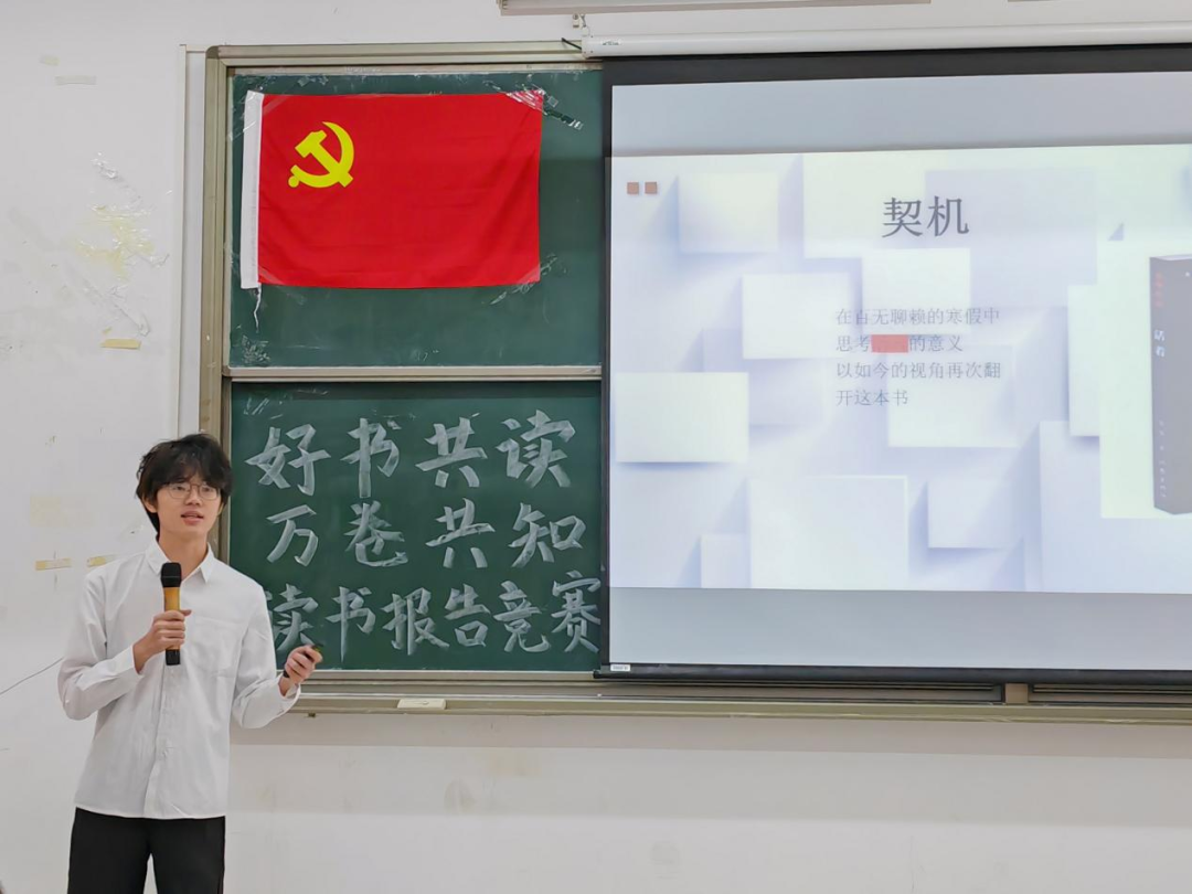 李婷婷同学分享的书籍是《沧浪之水》,通过一个青年的奋斗和成长历程探寻关于事业、关于人生的答案。李婷婷同学从对人性的批判、生活政治、社会现象三方面分析了全书的整体思想,并指出无论现实的沧浪之水是清澈还是污浊我们都要欣然接受,去勇敢探寻自己的人生之路。