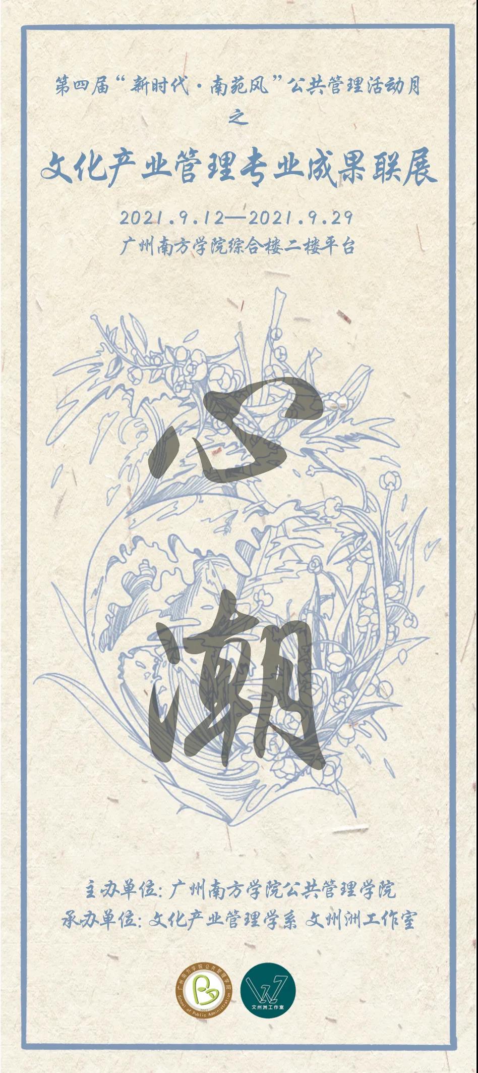 展题「心潮」,肇始于同学们将让文化产业管理专业在此次展览中发现自己的优点,改正自己的缺点,进一步丰富与发展自身,促进文化产业管理的发展。