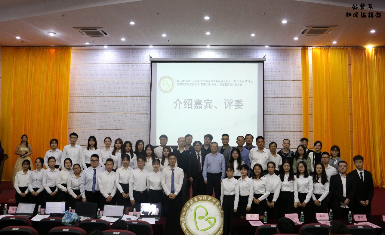 11月15日18:30,公共管理学系第二届“新时代·南苑风”公共管理活动月系列活动之十五:“公共关怀”员工调研成果汇报会及“管理之道”员工大讲堂暨案例大赛决赛在图书馆学术报告厅顺利举行!