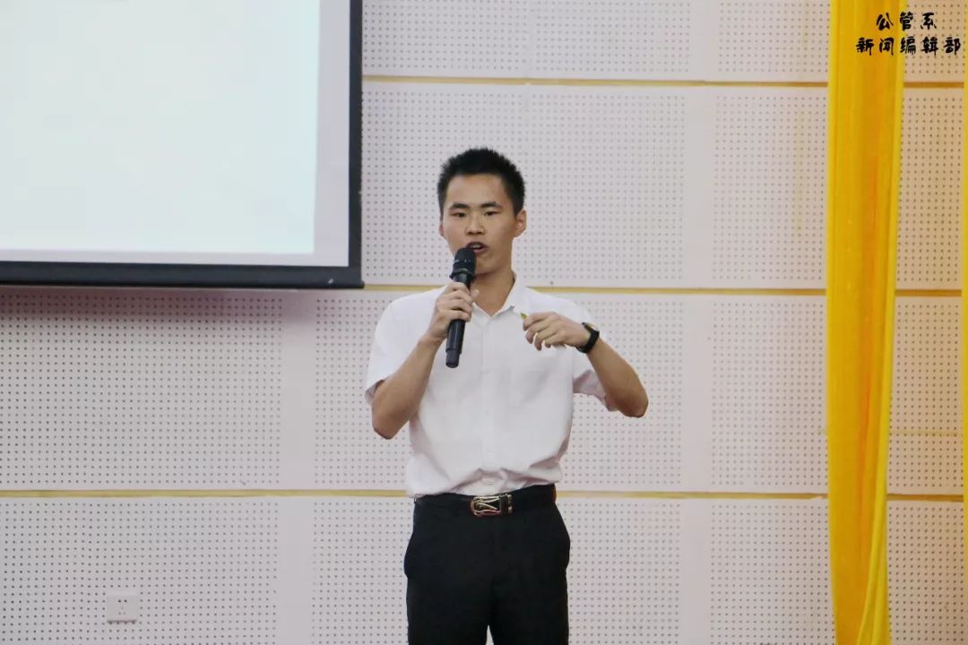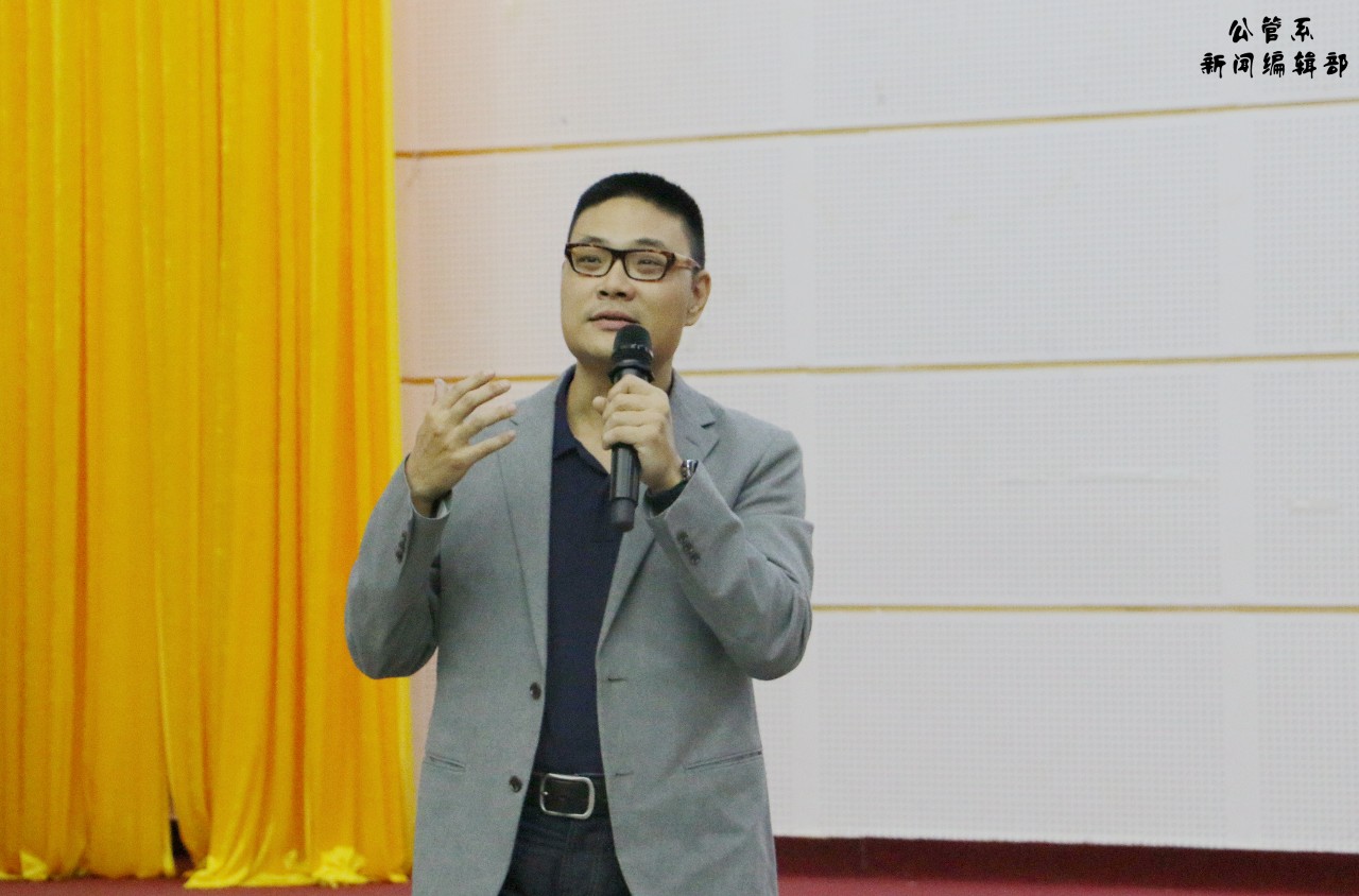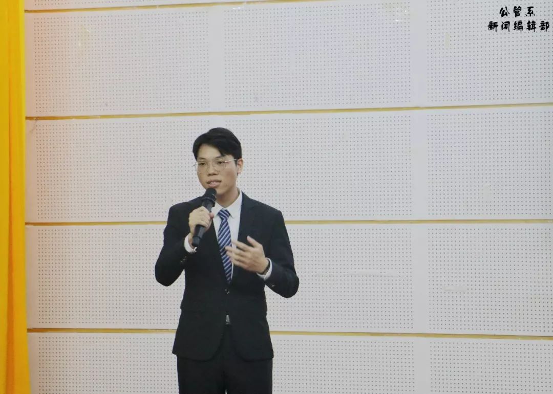 陈天祥主任为我们致开场辞。陈主任首先简单地向大家介绍了“管理之道”员工大讲堂暨案例大赛这个品牌活动的历史。今年,公共管理学系已经是第十一年举行“管理之道”员工大讲堂暨案例大赛,陈主任肯定了这个比赛确实符合应用型本科高校的建设需要,能鼓励员工积极投身公共管理实践,并提高其发现问题、分析问题、解决问题的能力。随后,陈主任肯定了同学们这几个月以来的调研成果并预祝今年的“公共关怀”员工调研成果汇报会及“管理之道”员工大讲堂暨案例大赛决赛圆满成功,也预祝同学们再创佳绩,收获满满!