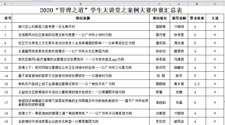 截至2020年5月1日,第三期案例大赛承办方共收到22份报名表,5月15日共提交21份参赛策划书材料,比赛进入初审阶段。其中1组因超时5分钟提交,依据大赛细则规定,在总分基础上扣取0.5分。