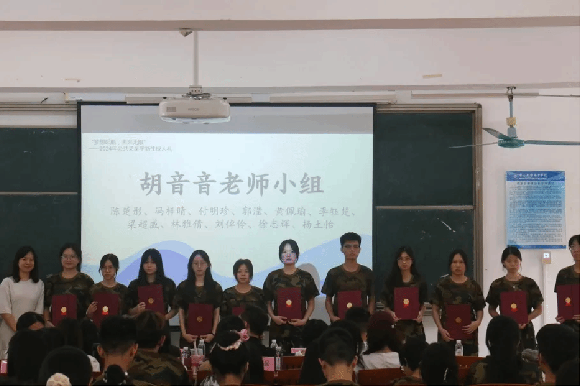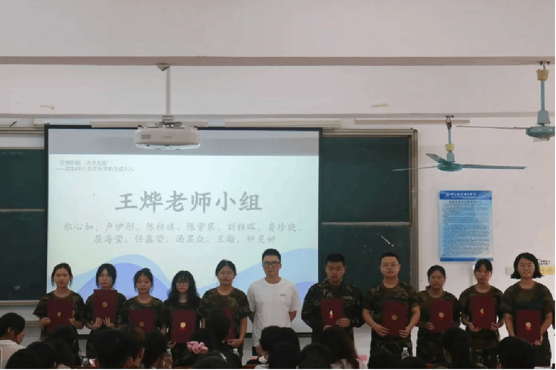 在成人证书颁发环节,2022级专升本新生、2024级普高新生以导师小组为单位依次上台,从导师手中领过属于自己的成人证书。