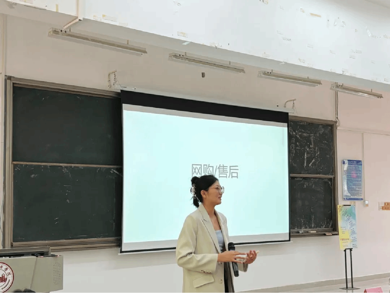 在正式分享会开始前,员工们与公关教师们在6教101会议室进行了座谈会。公共关系学系主任蔡宝婧老师先对员工的到来表示了热烈欢迎,随后介绍了公共关系专业的建设情况。员工和老师也做了自我介绍,师生间互话生活家常,气氛欢乐融洽。