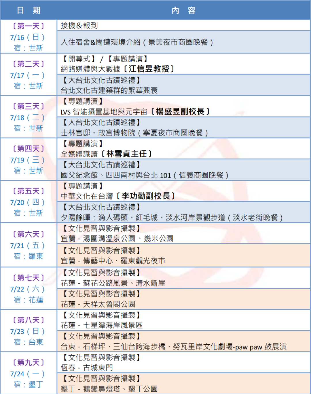 新媒体创作暨文化体验营是7月16日——7月29日,共有14天体验时间。在此期间将由不同教授老师带领学习不一样的新媒体拍摄与创作技巧。