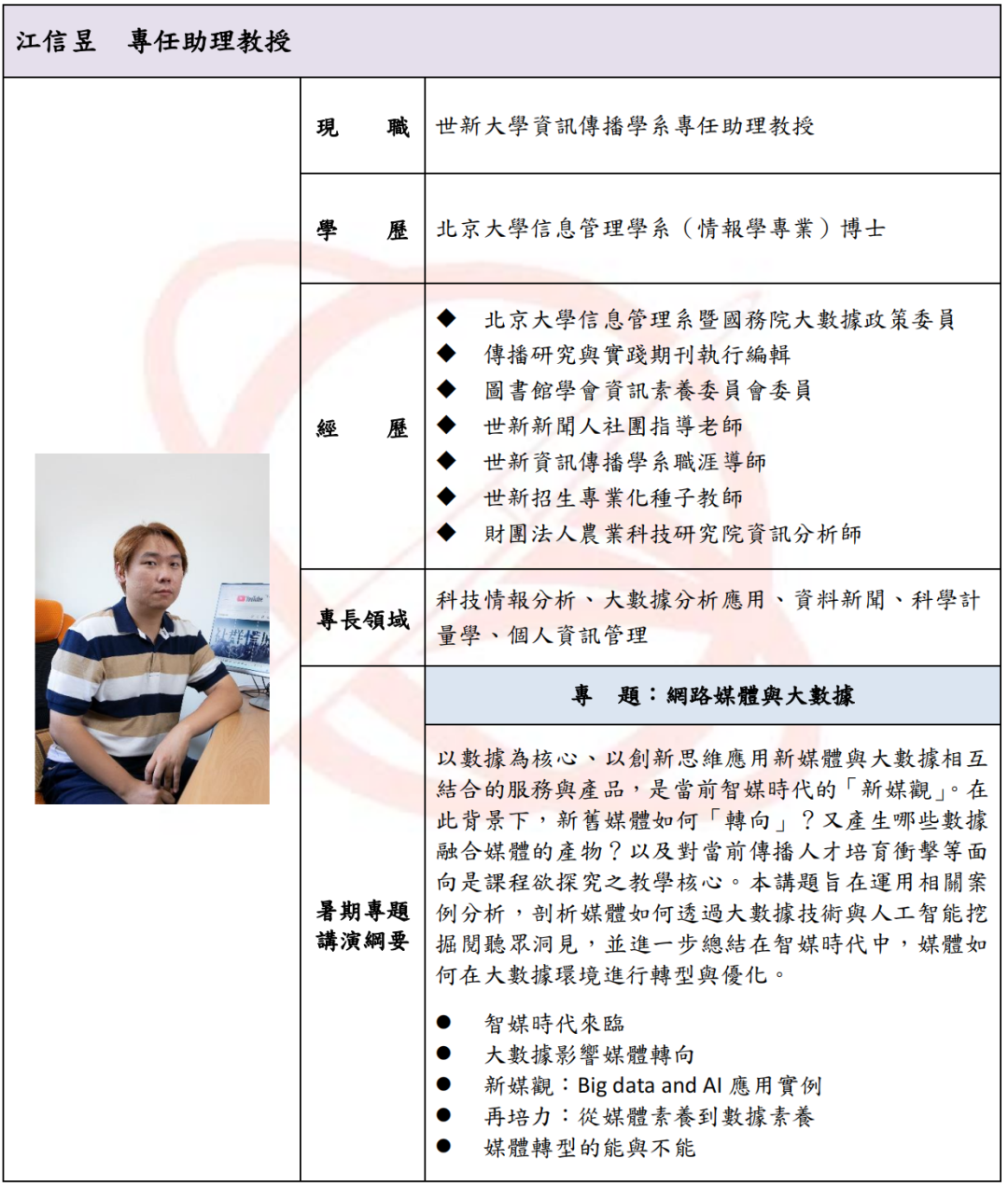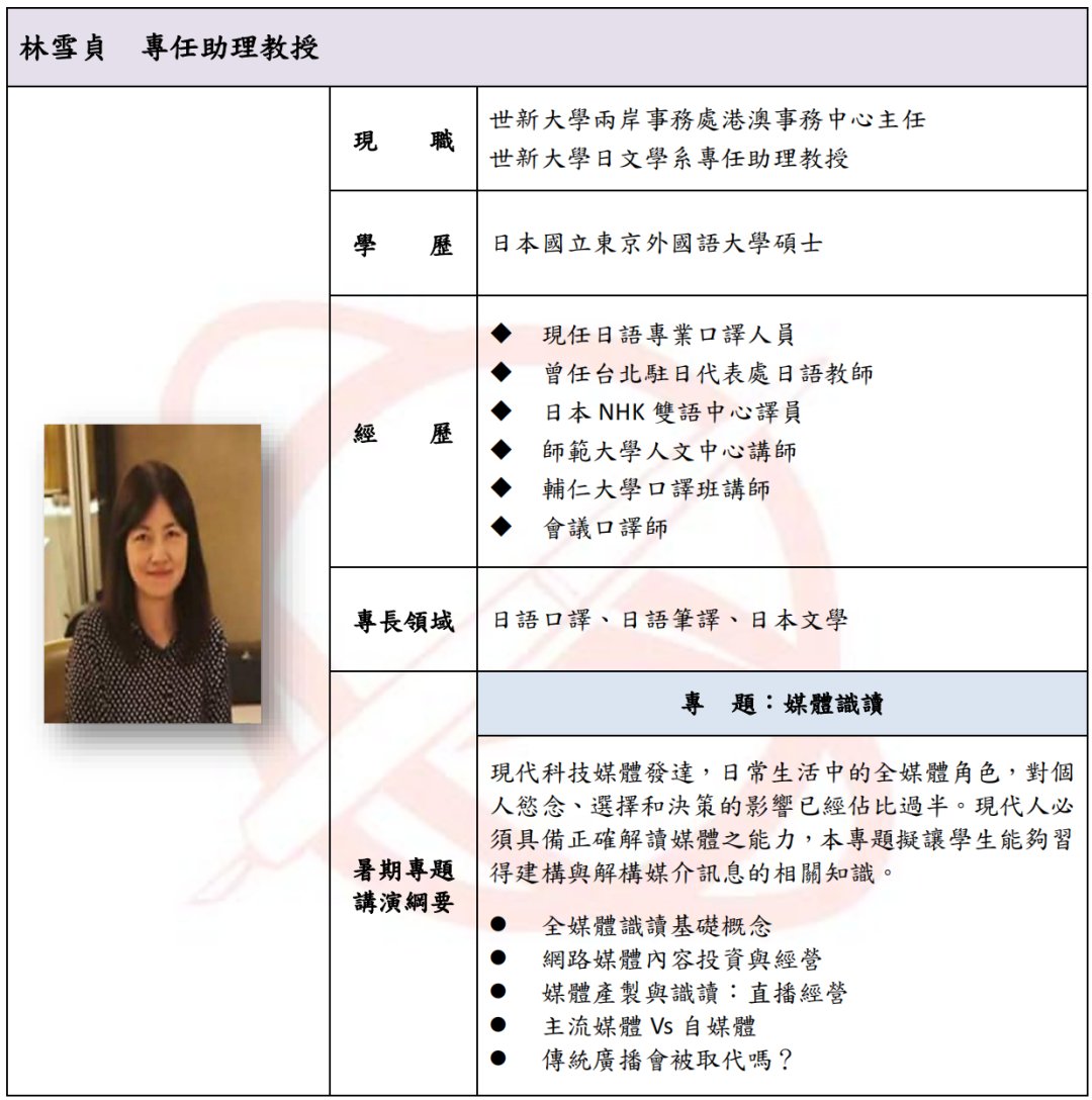 世新大学为大陆地区员工申请短期研修简章2023年秋季班,设有三个研修班: