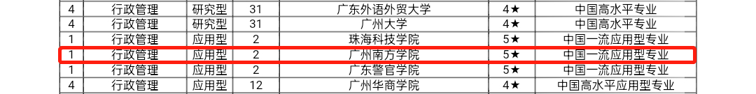 行政管理专业在全省应用型大学中排名第一,获评“5星中国一流应用型专业”