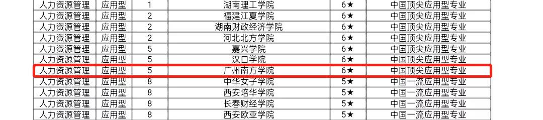 人力资源管理专业在全省应用型大学中排名第一,获评应用型大学中唯一一所“6星中国顶尖应用型专业”。