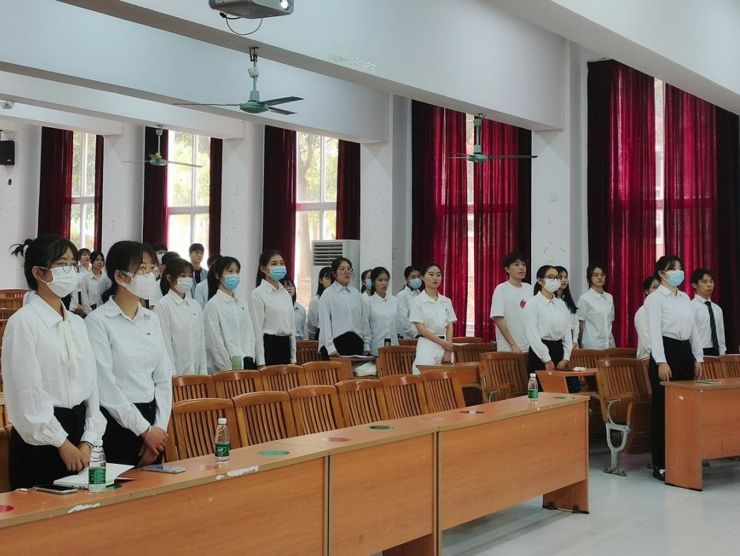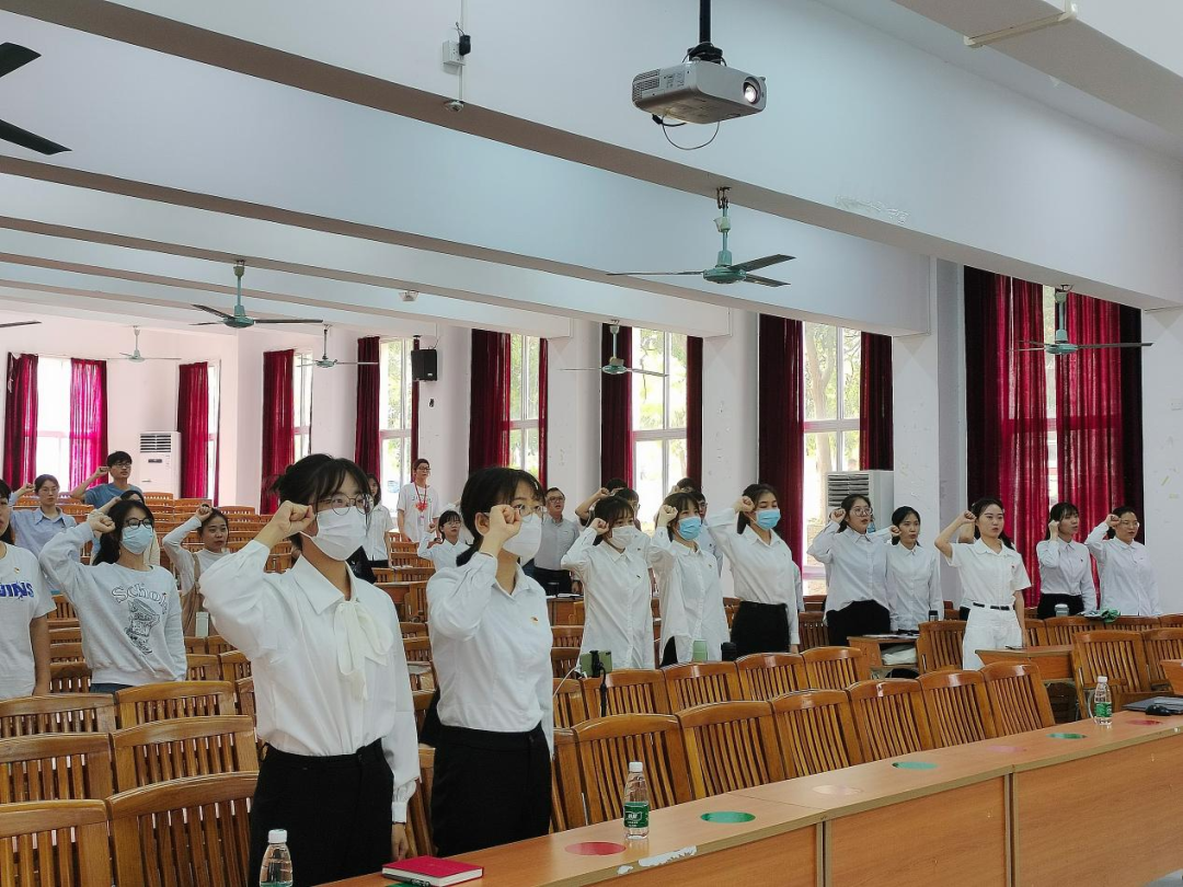 饶思琦、郭炳明等8名发展对象依次就自身对党的认识、入党动机、个人履历、家庭和主要社会关系等情况进行汇报。随后,入党介绍人对8名发展对象在考察期内的表现做总结评价。接下来,大会通过无记名投票的方式,同意这8名发展对象成为预备党员。