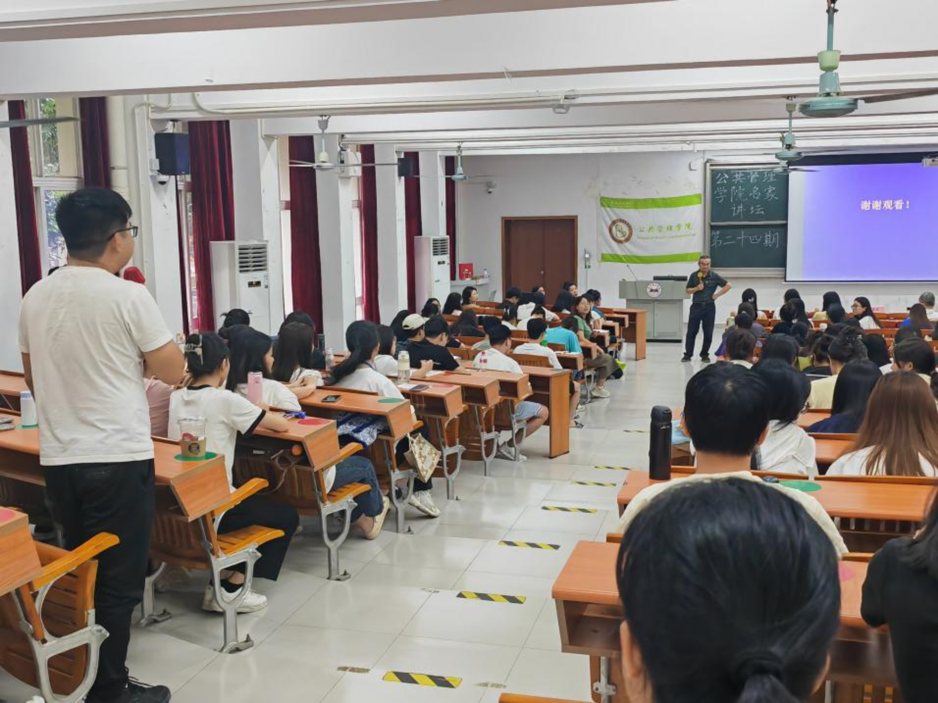 在提问环节,陈天祥书记以新时代背景下数字技术的发展趋势为基础,联系公共服务高质量发展的规划布局,旁征博引、点面结合、深入浅出地为同学们解答疑惑,从思想和理论角度强化了同学们对数字技术与科层条块结构的认知。