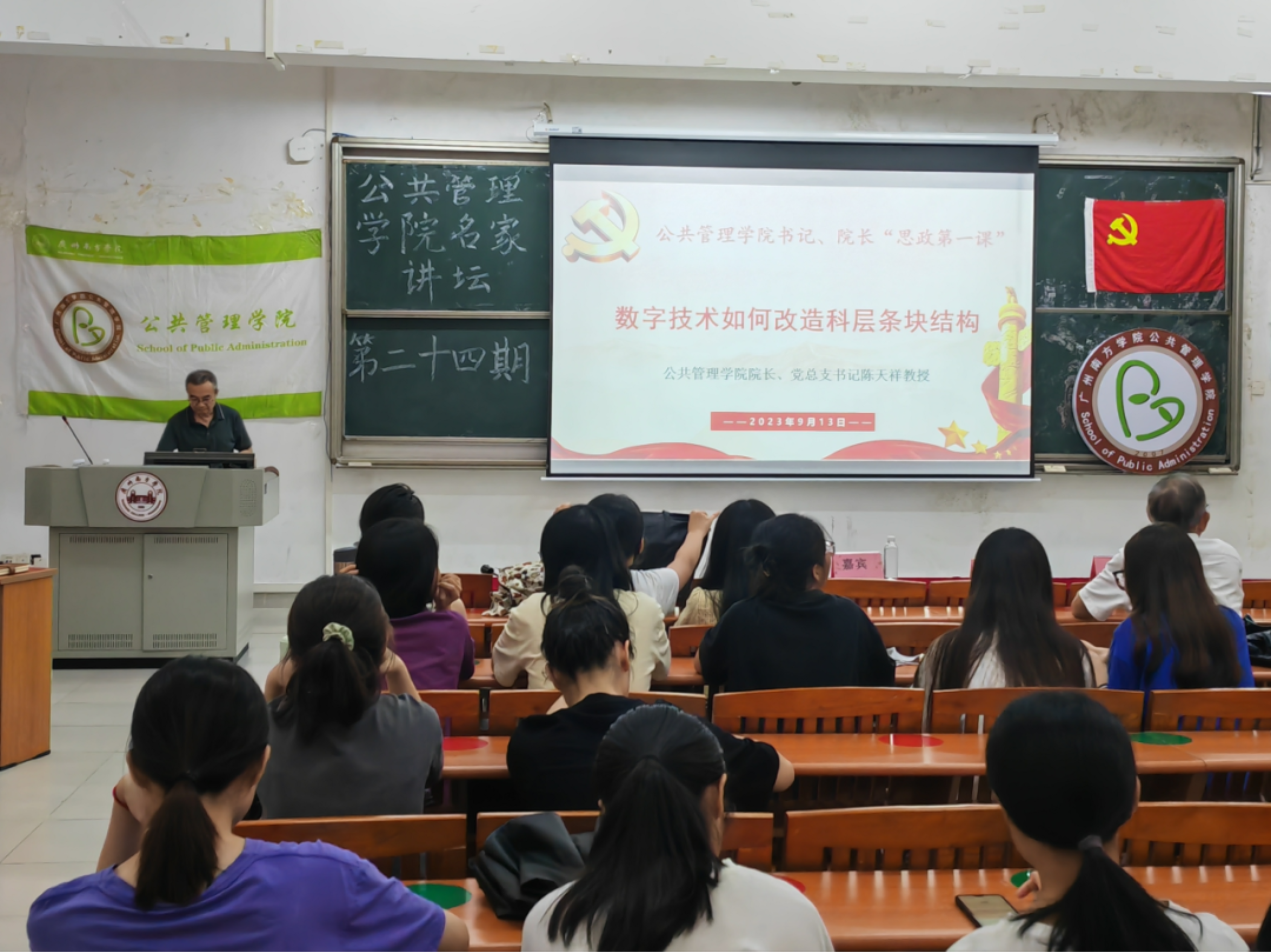 为提高同学们对数字技术驱动下科层条块结构的关注,深入剖析数字技术驱动下科层组织变革,推动数字政府建设,从而更好地为人民服务,伟德国际victor1946公司党总支书记陈天祥经理于2023年9月13日在6教206为公司师生开展了以“数字技术如何改造科层条块结构”为主题的第一堂思想政治理论课。