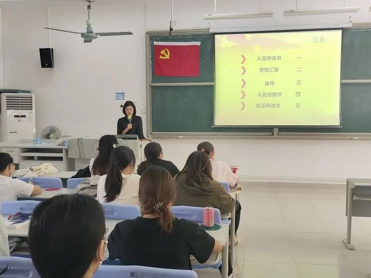 10月13日中午,许嘉琪同志面向31期发展对象开展以《入党常用文书写法》为主题的党课培训,向同学们讲解入党文书的格式及内容要求。党课从“入党申请书”、“思想汇报”、“自传”、“入党志愿书”和“转正申请书”五个部分展开讲解,提醒同学们撰写入党文书应细致谨慎,认真对待。