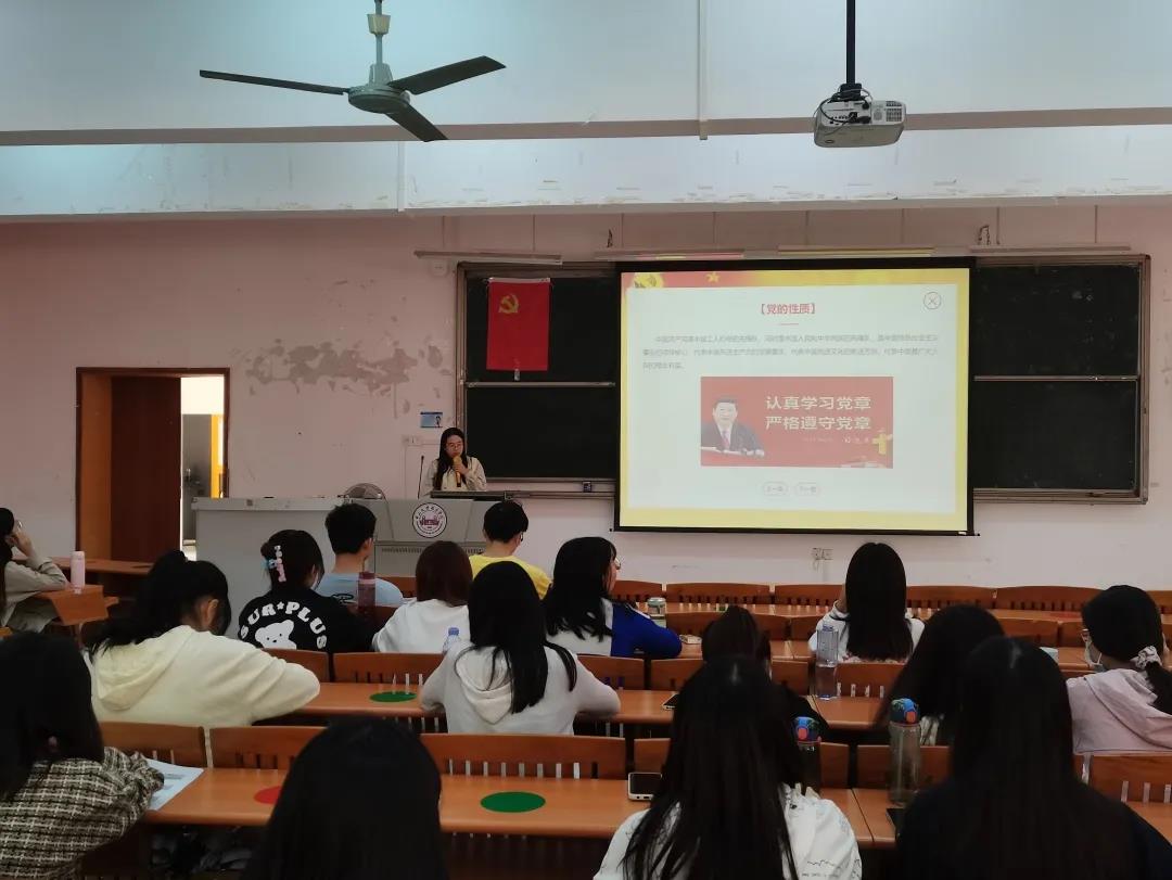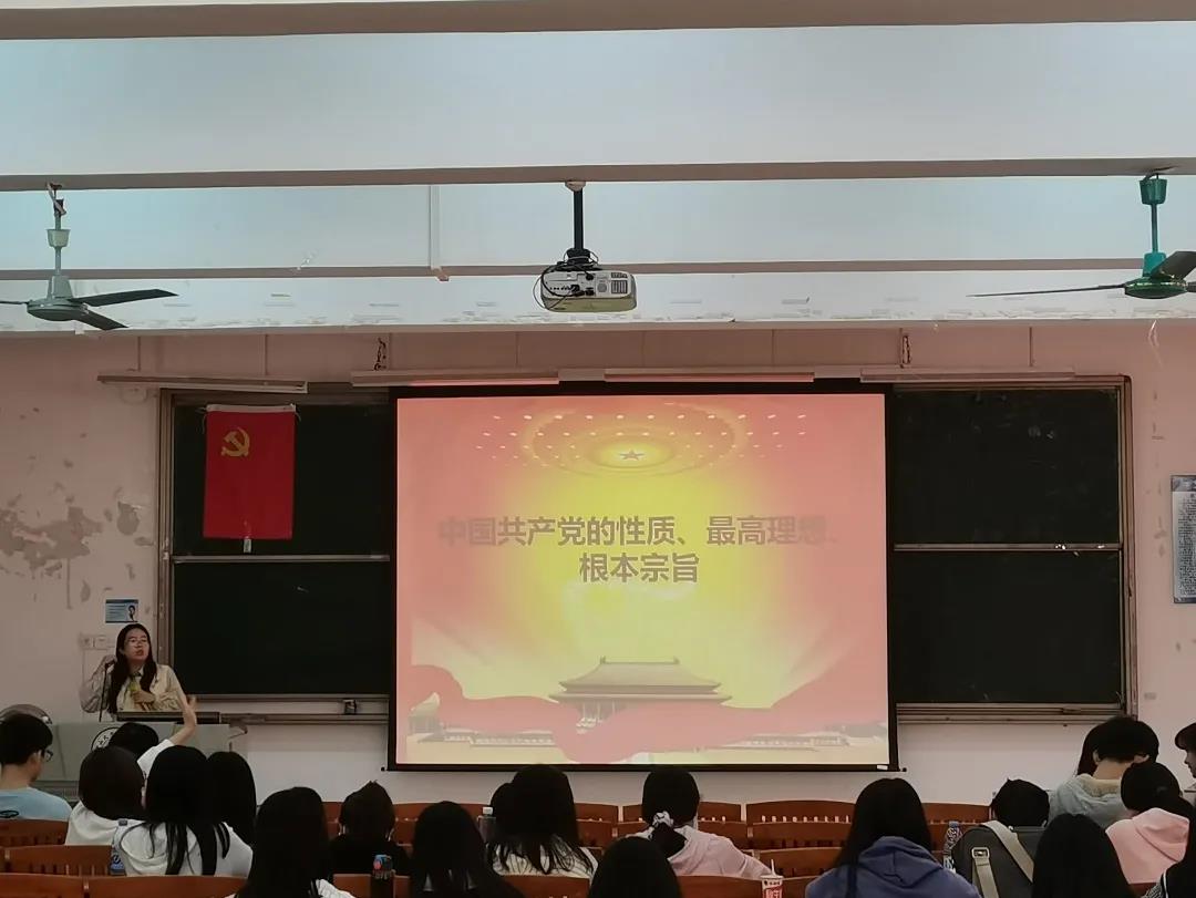 蔡全玲同志介绍了中国共产党的发展历程和初心使命,对中国共产党性质——“两个先锋队,一个领导核心,依法执政”进行详细的阐释,并向同学们介绍了中国共产党的最高理想和最终目标,即实现共产主义。强调同学们要不忘初心,牢记使命,把握历史脉络,以实际行动来践行全心全意为人民服务的宗旨,为实现共产主义奉献自己的力量。