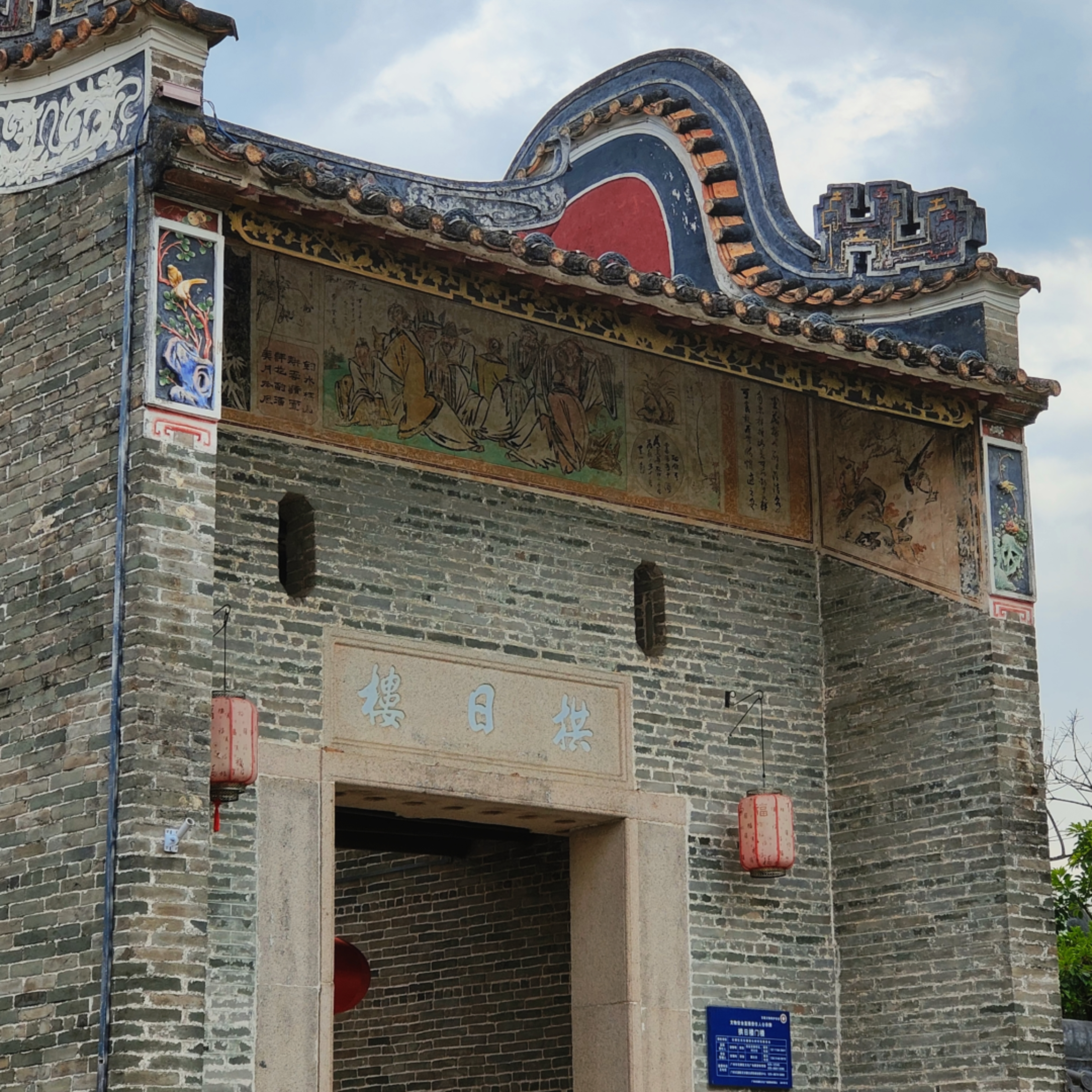 7月2日上午,我们提前预约负责港头村运营的叶经理(叶经理——国企投资一方的员工)。叶经理带领我们详细介绍港头村的历史文化资源:福如楼,列入广东省花都区文物保护单位,福如楼的厅堂放置关于港头村的沙盘,在这一过程中我们了解到港头村的具体布局、建筑设计来源,港头村的总体设计围绕着村内的风水来布局,其风水体现“山水朝北、四水归源”的特点;还有为抗日修建的拱日楼、始建明代有600多年历史的文孙曾公祠与绍文堂等历史建筑。