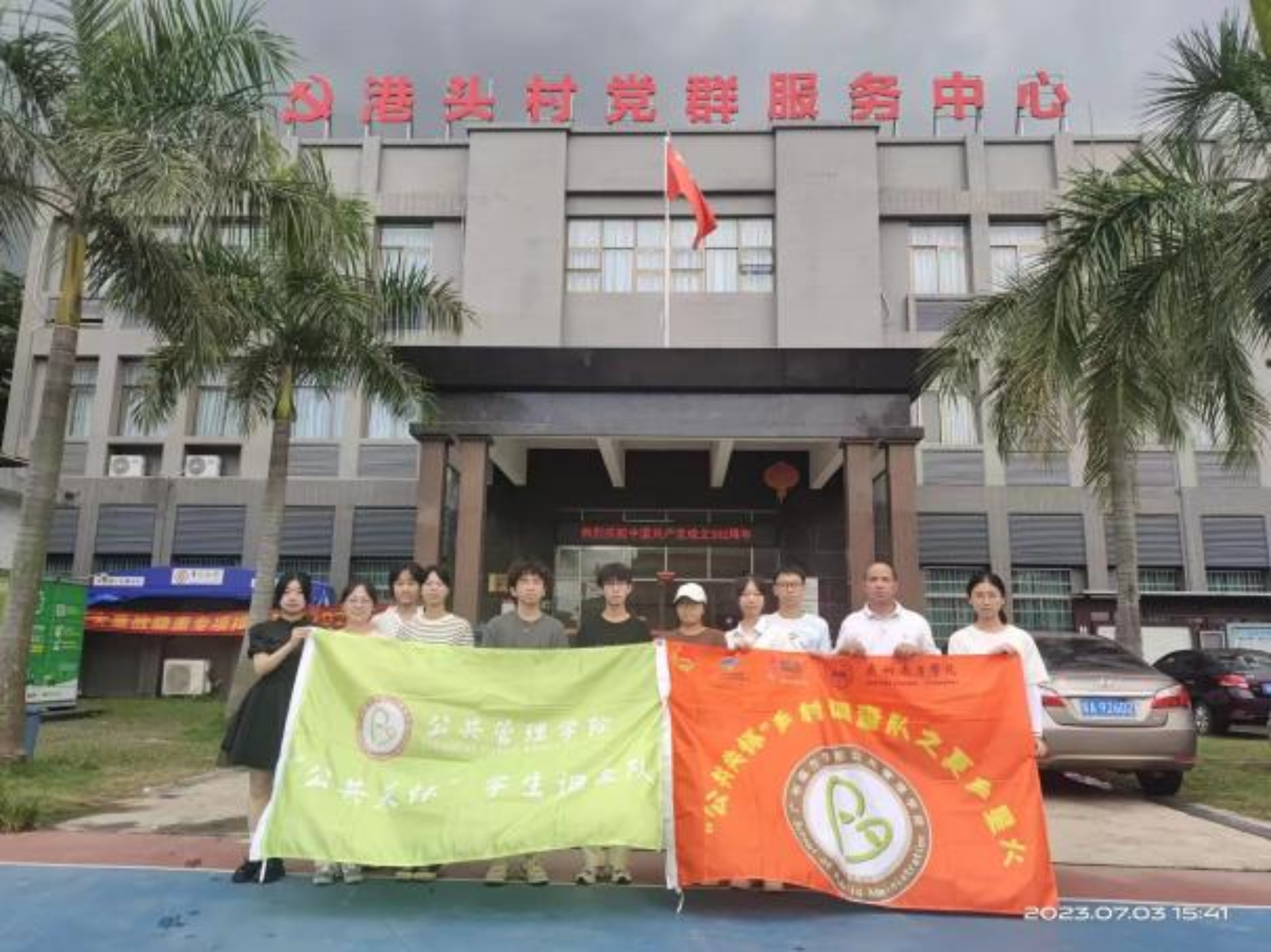 记得刚进村便是来到港头村的党群服务中心,如今,再次回到调研活动的起点,大家内心百感交集。通过与村书记助理的谈话,我们更加了解到港头村的乡村治理与乡村振兴的问题。同时,通过与前任老书记的谈话,我们也了解关于港头村一些特殊的历史事迹。在访谈结束后,本团队成员再次向村书记、村书记助理以及前任书记表达了最诚挚的感谢,并留下最美丽的回忆。
