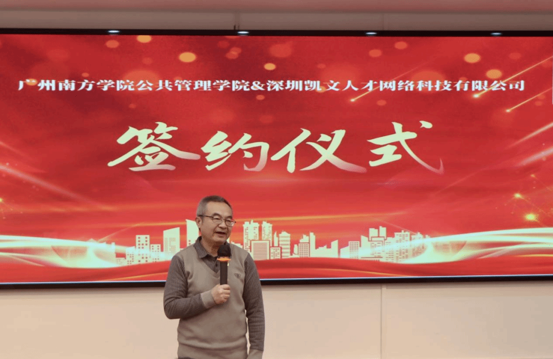 陈天祥经理在致辞中表示,公司始终坚持以人才培养为核心,深耕行政管理、公共关系学、人力资源管理、文化产业管理等专业建设,积极探索产教融合、校企合作的有效路径。他强调,此次与深圳凯文公司的合作,公司将以最真诚的态度、最务实的行动推进落实,追求合作的长效性与可持续性,力争实现边际成本递减、边际效益递增的良性发展。同时,他指出,AI时代背景下,校企协同培养00后青年学子已成为行业人才培养与吸纳的必然趋势,双方携手合作,既能为公司人才培养注入产业活力,也能帮助企业抢占人才培养制高点,实现优势互补、双向赋能。