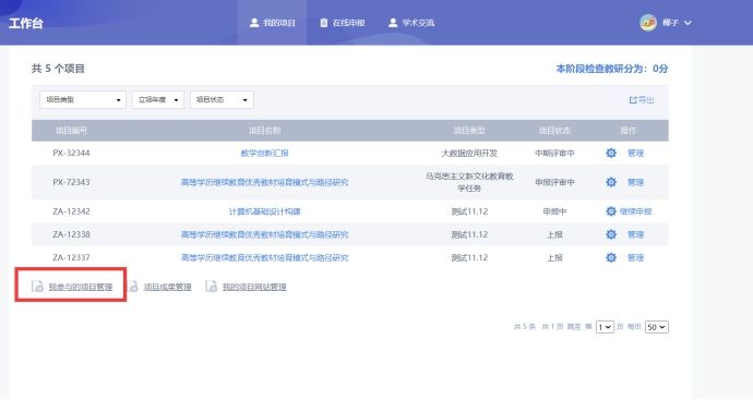 5. 登录用户如果只是作为项目成员参与项目、或者同时参加了其它项目,也可以在我参与的项目管理中,查看参与建设的项目情况。