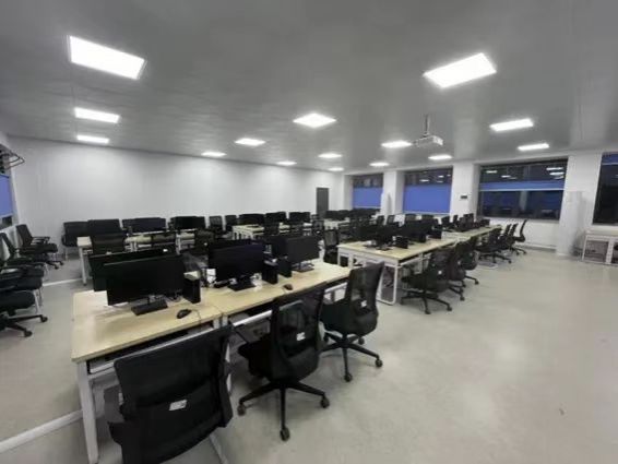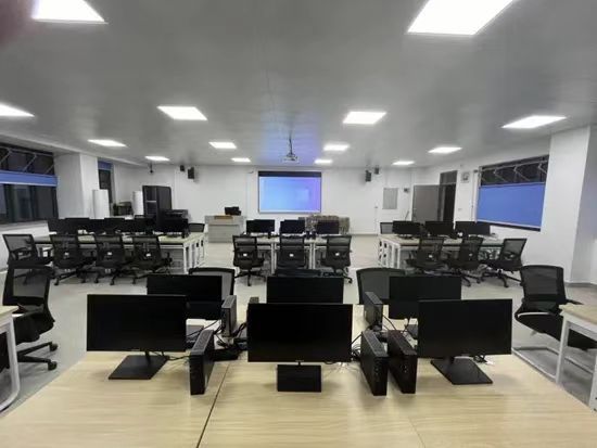 实验室分为教学区和沙盘区,每台电脑均装有DBE cloud数智实验教学平台,供员工学习人力大数据、数智工厂使用。沙盘区共有沙盘桌6张,供员工进行沙盘模拟使用。