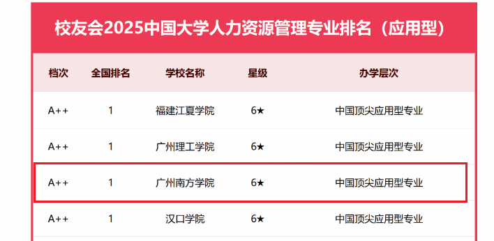 目前,公司人力资源管理专业已连续七年荣获艾瑞深员工会网榜单的六星级中国顶尖应用型专业的称号,并在同类型院校中排名第一。